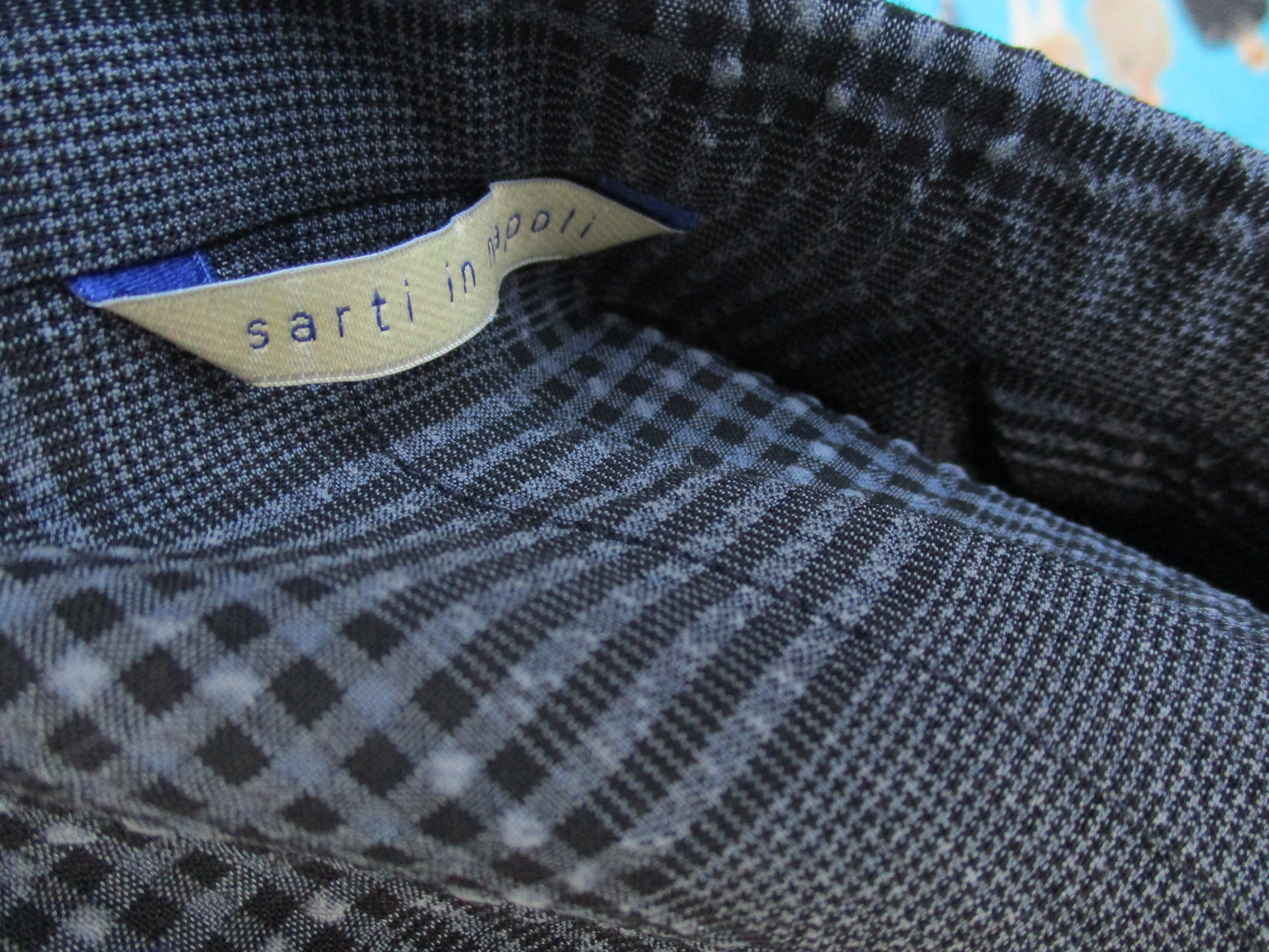 サッカー地のような凹凸感ある表情をもつインディゴのグレンチェック柄。触ればイメージは変わります。ウール・シルクの混紡素材は、リネンやコットンでは味わえない柔らかで、しなやかです。さらにストレッチ素材が入ることで、動きの邪魔をしません。