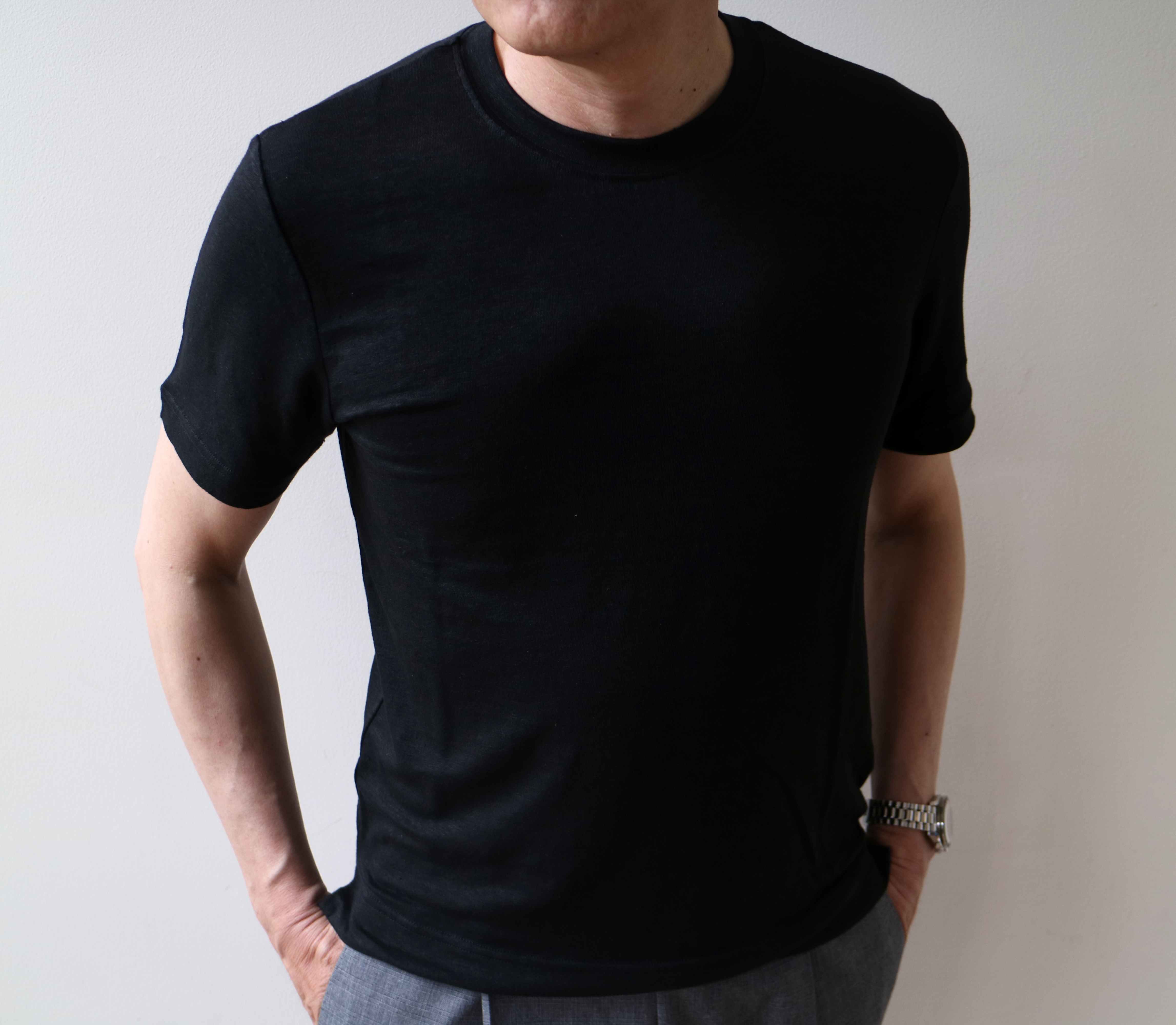 MODEL:「1UE00151J」リネンストレッチ ラウンドネックTシャツ