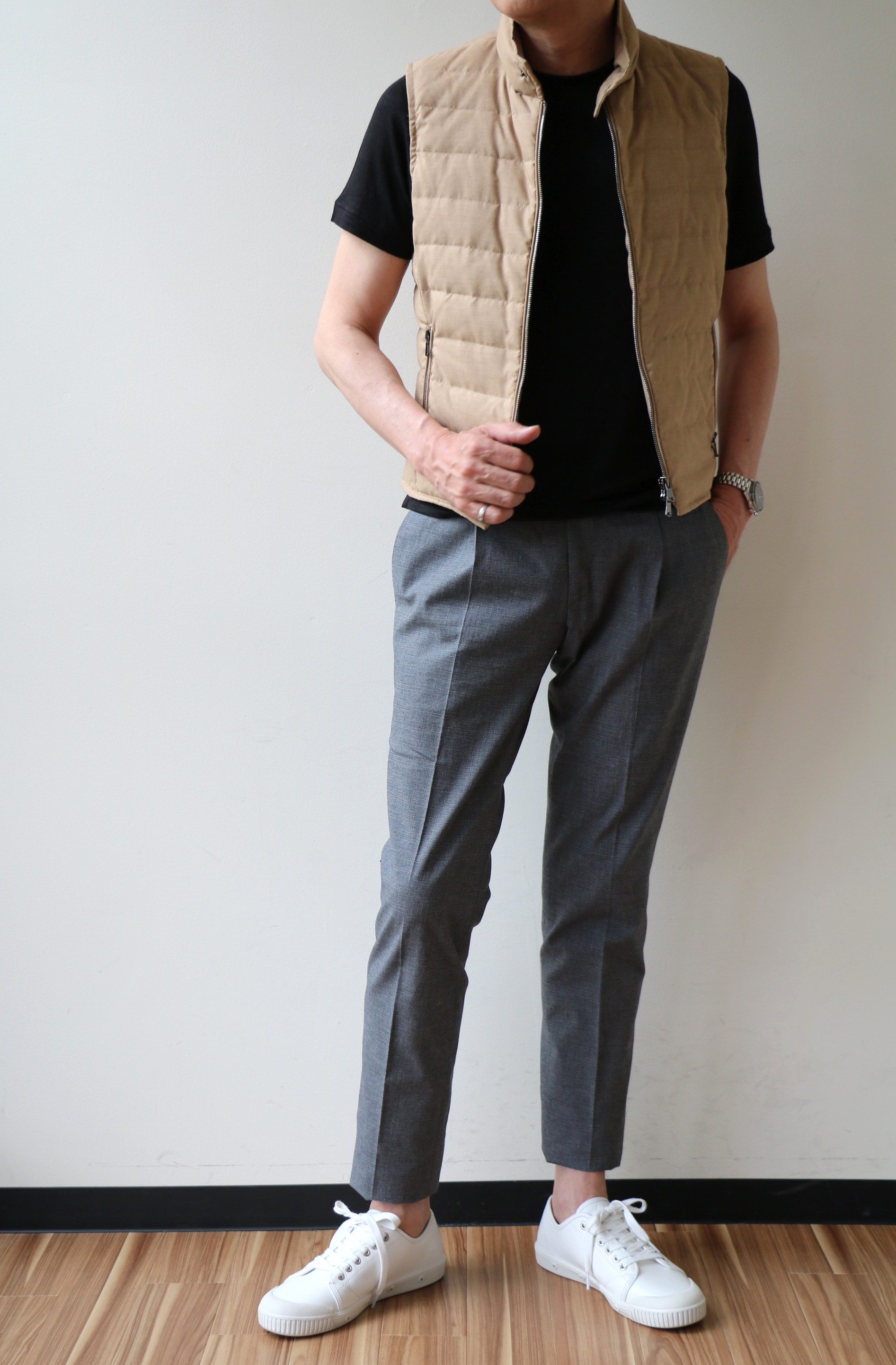 最後は、ブラック。こちらもマガジーノからEMETTI(エンメティ)の「シャツ地ダウンベスト」を。勘違いしないでくださいね。マガジーノの方がグローリーガイより魅力的?ではないんです。上半身のみの写真でご案内するつもりでしたが、ついつい欲が出てしまい...の結果です。