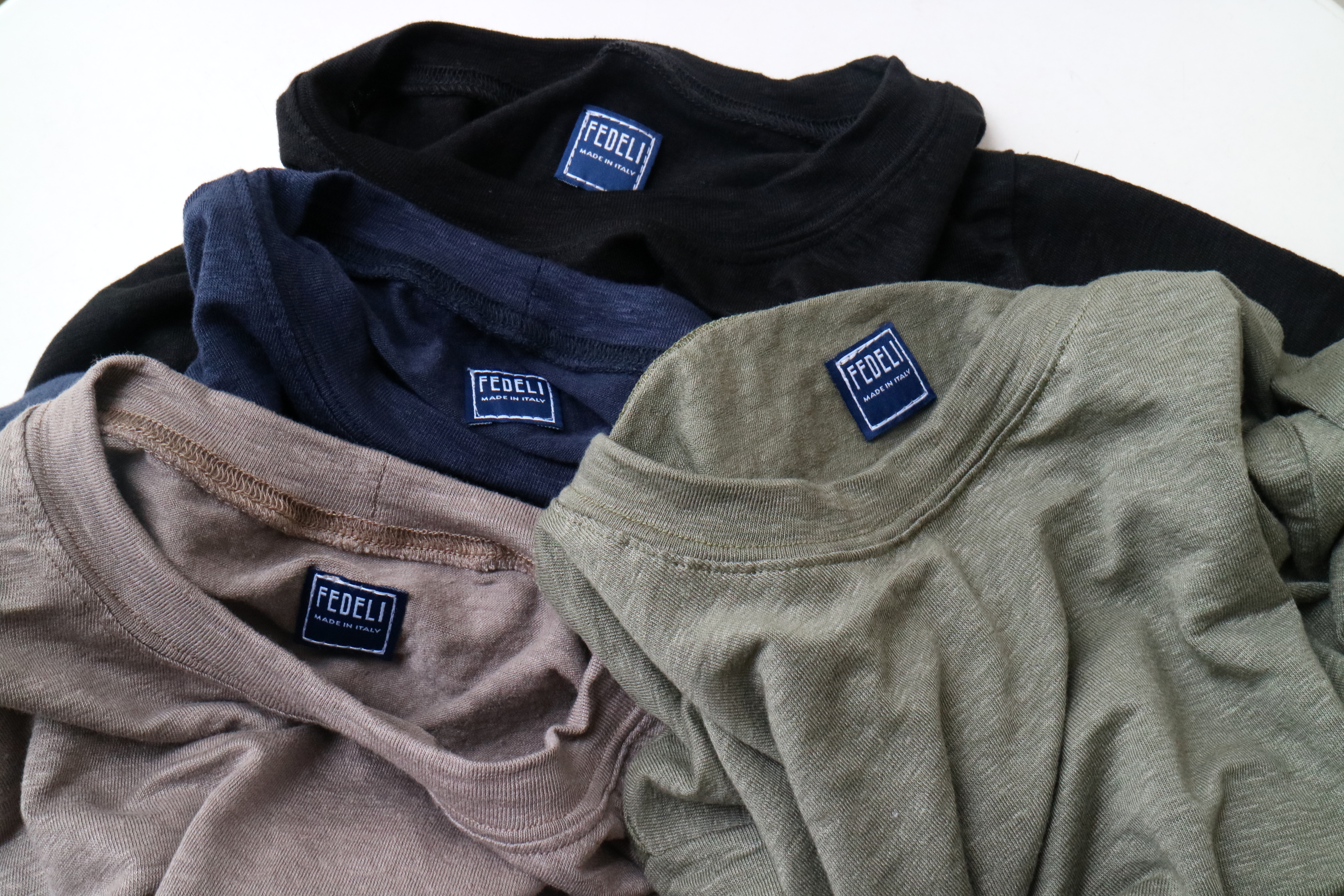 いかがでしょうか。昨年の夏より展開を始めた【FEDELI/フェデーリ】ですが、リネン素材を扱うのは今回が初めて。かなりの優れものですので、ぜひワードローブに加えてみてください。もちろん、家庭での洗濯は可能です。