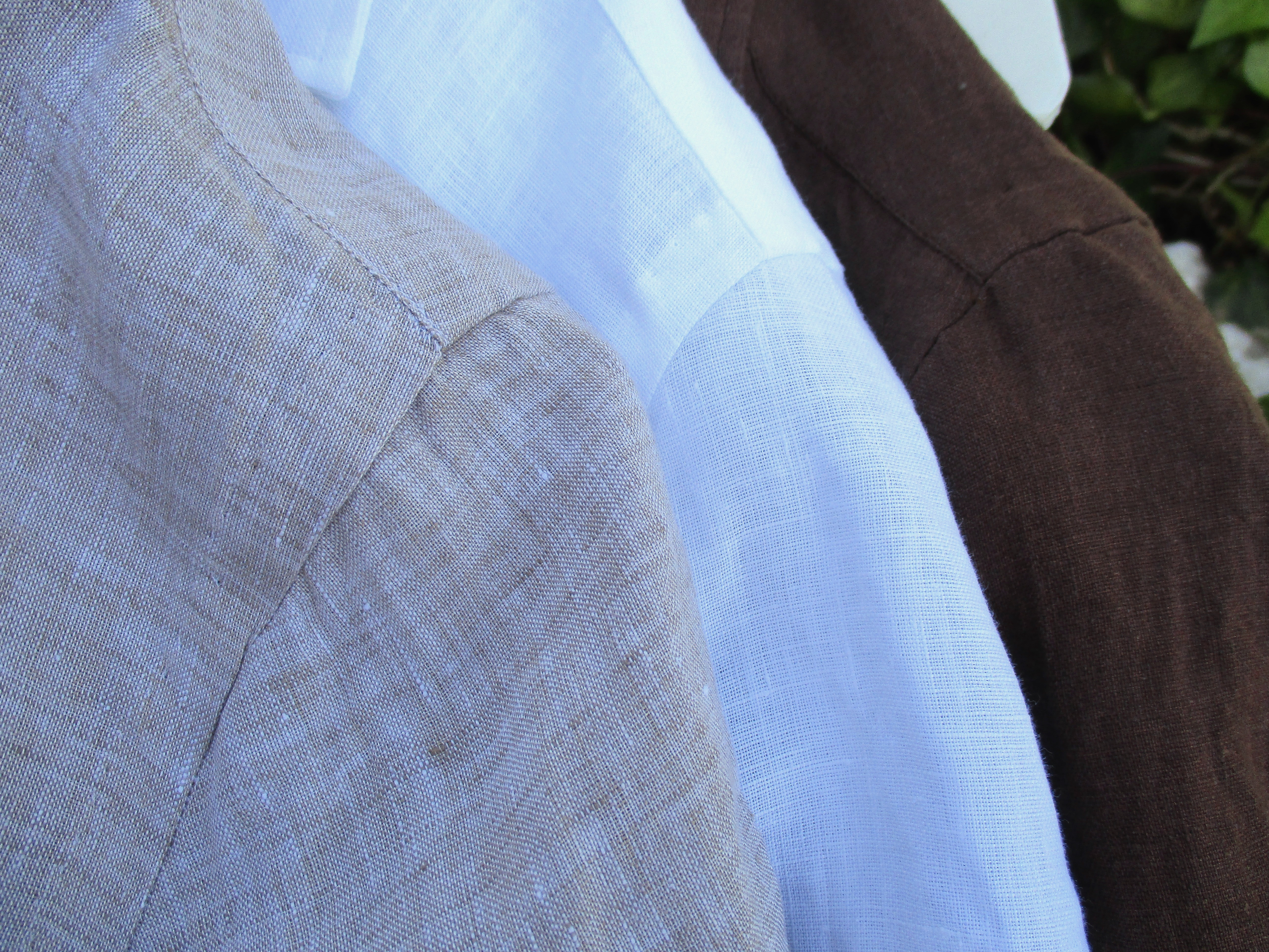 ヒンヤリした肌触りのリネン素材は、夏の冷房装置です。思わず、インにTシャツを合わせてしまいました。最後に、無地で揃えたのは、
