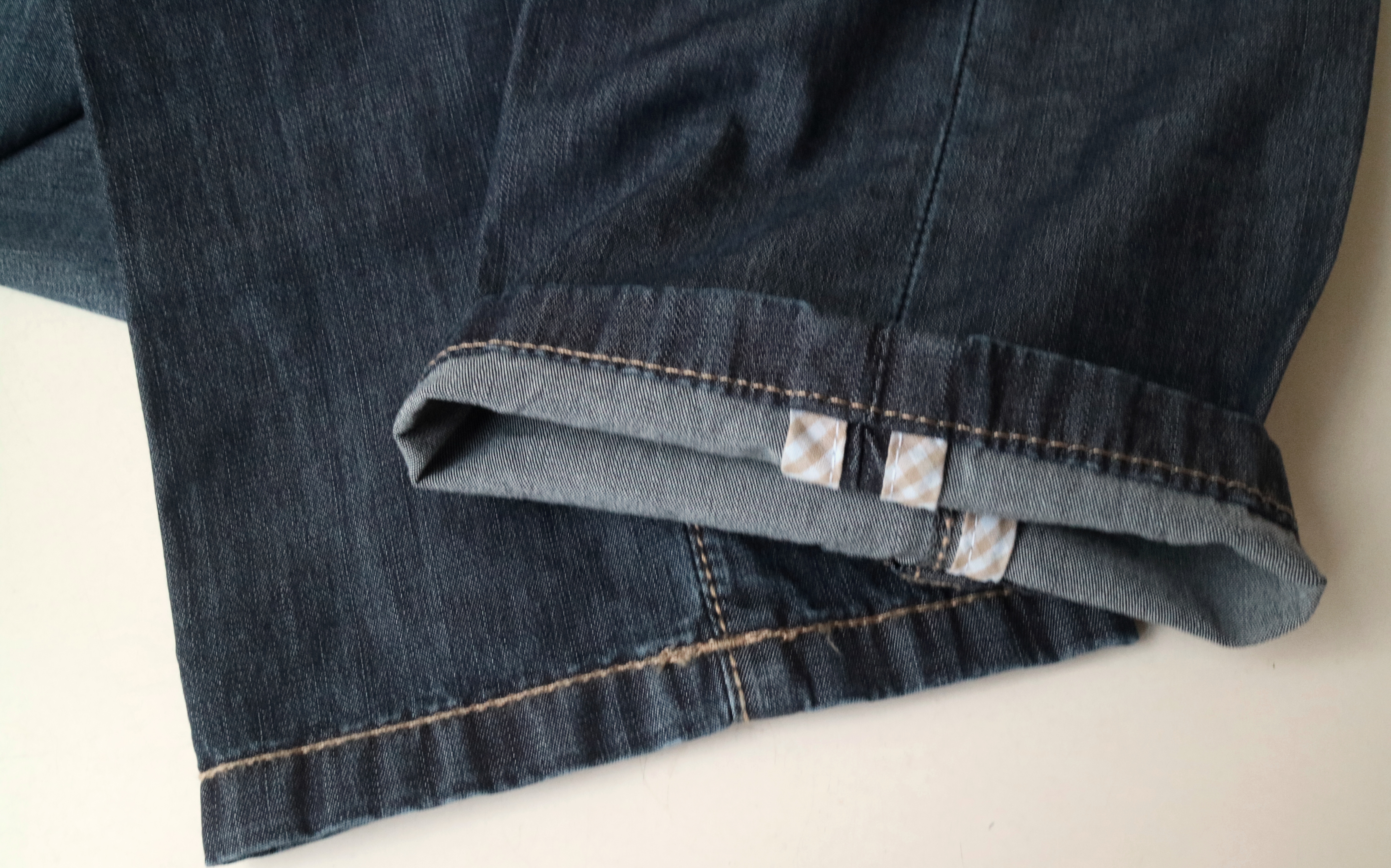 青みの抑えられたクールなインディゴブルーは、シャンブレーのように涼しげです。ベージュのステッチが表情を爽やかに見せています。