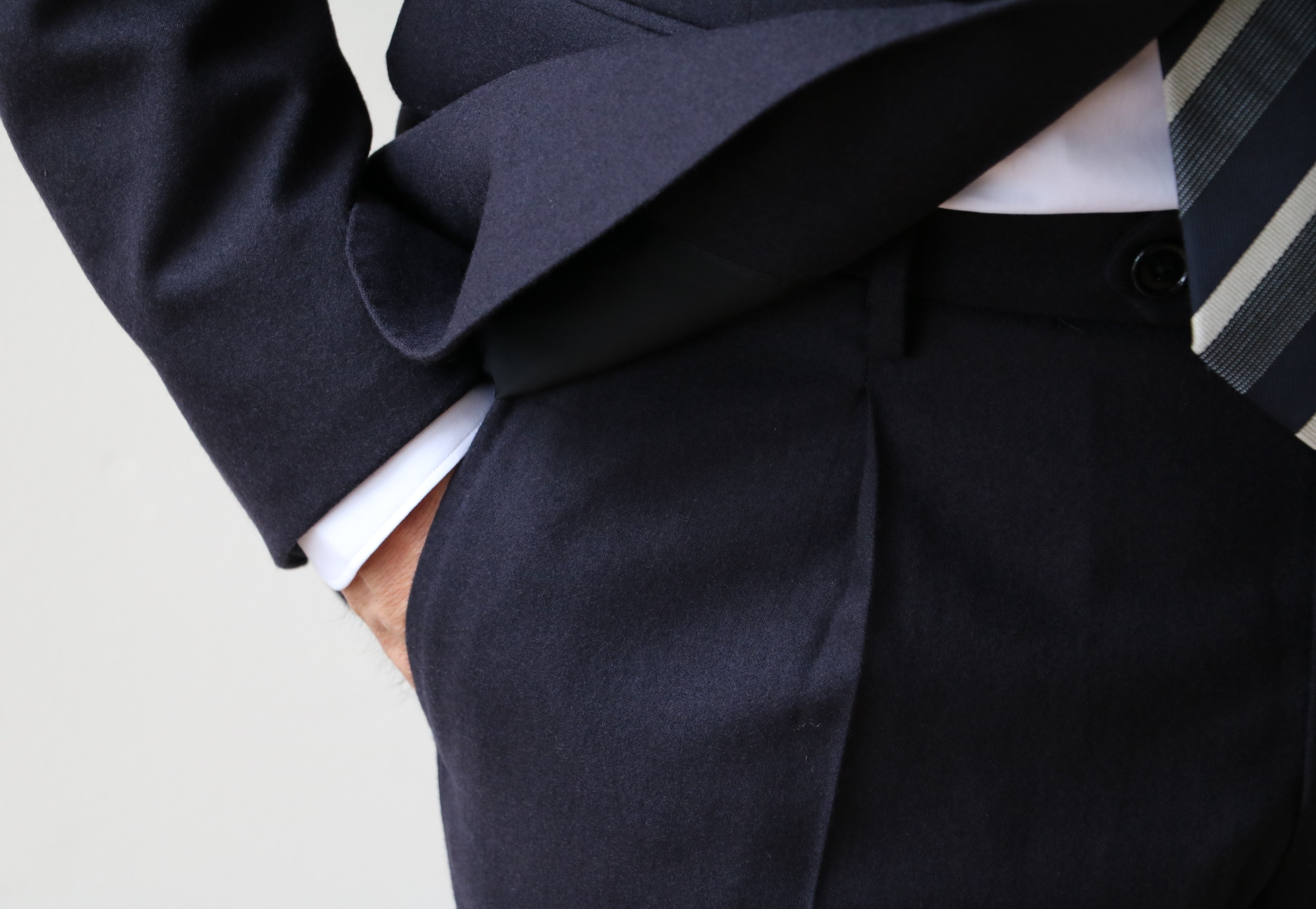 今回セレクトした生地は、ストレッチ素材のウール。現在、展開しているスーツの中では最もタイトでシャープなフォルムを持つ【TAGLIATORE/タリアトーレ】。ストレッチが効くことで、より運動量を確保しながら、すっきりとしたシルエットを楽しむことができます。