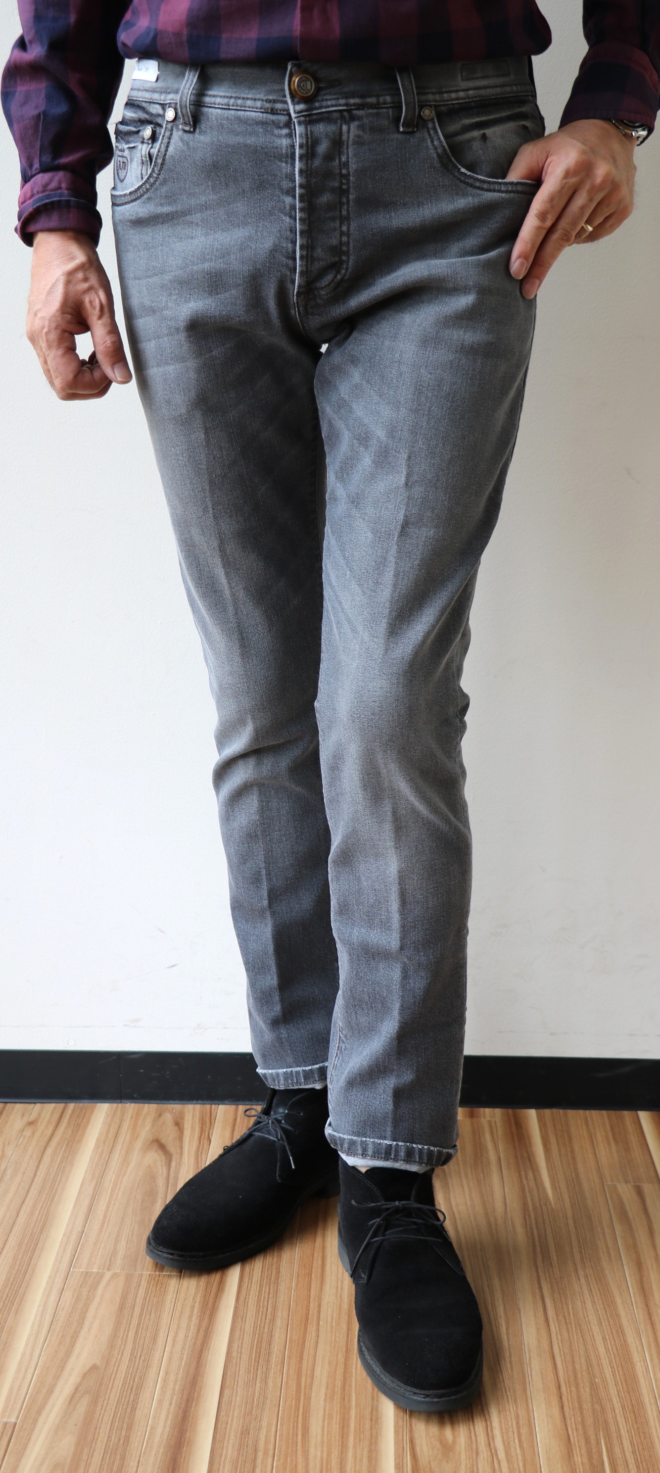 いわゆる、「デニスラ」というやつです。デニム素材を使ったスラックスのことを言うのですが、ネイビーのブレザーを「紺ブレ」と呼んだように何でもかんでも省略すればいいというものではありません。しかし、この呼び名で市民権を得ているようなら、このデニスラで通しましょう。モデル名は「SINGAPORE」です。
