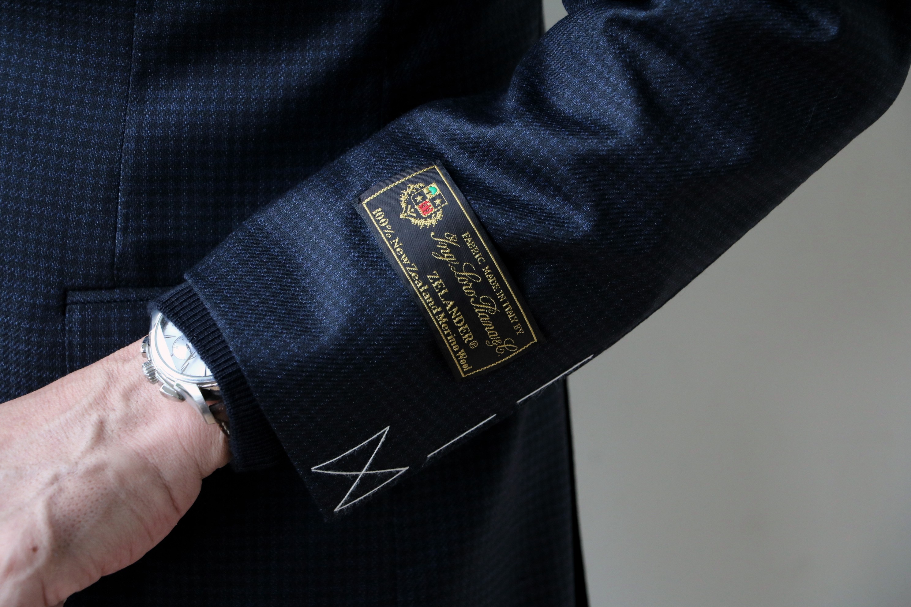 イタリアの最高級ファブリックブランド、ロロ・ピアーナ社を使ったハウンドトゥースのスーツは、LEON別注モデル。上品で光沢のある、美しいスーツに仕上がっています。