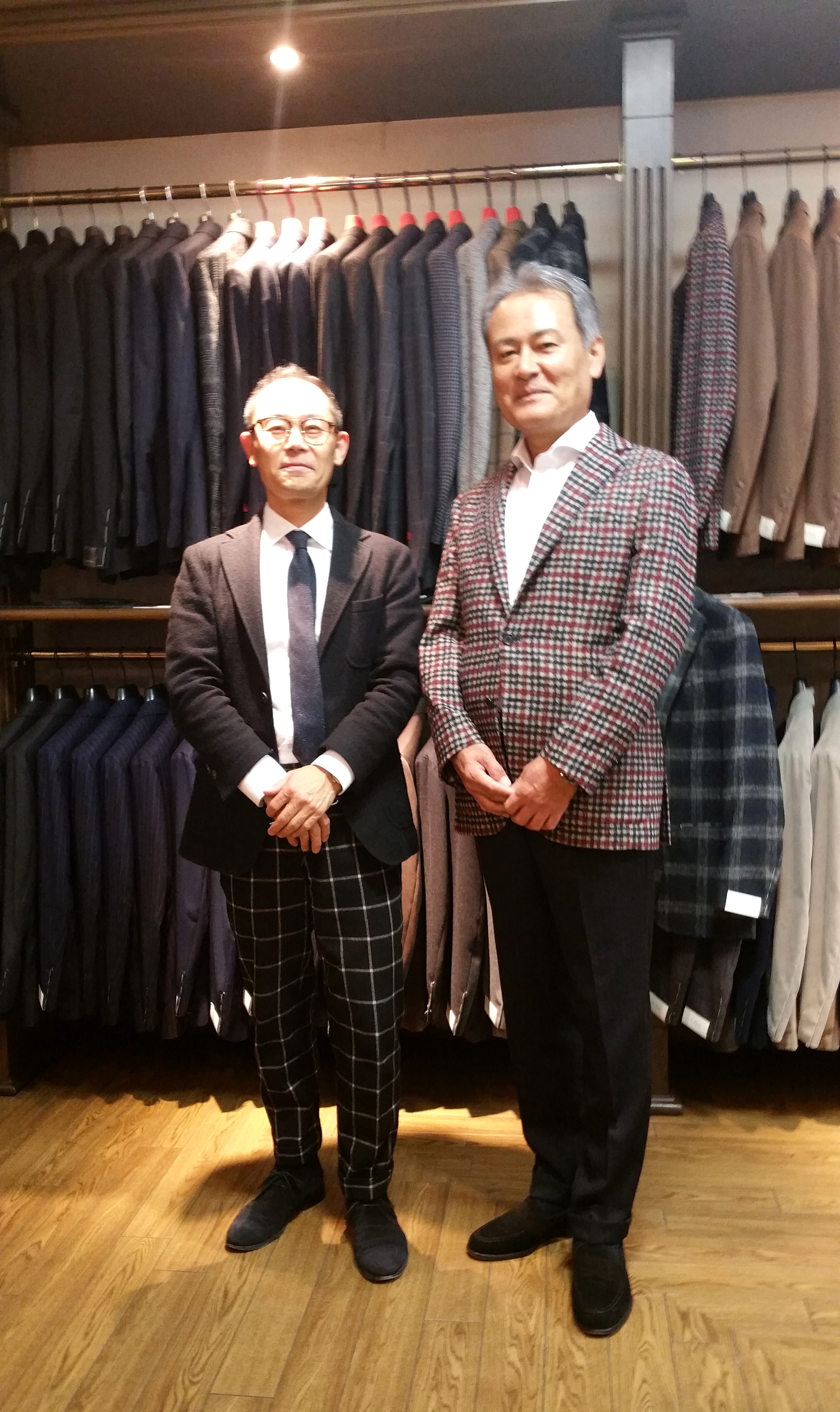 今季よりペトリロファンになっていただいたT様。羽織られているレッド×ネイビーチェック柄ジャケットの他に、ホップサックネイビー無地ジャケットを購入して頂きました。ありがとうございます。