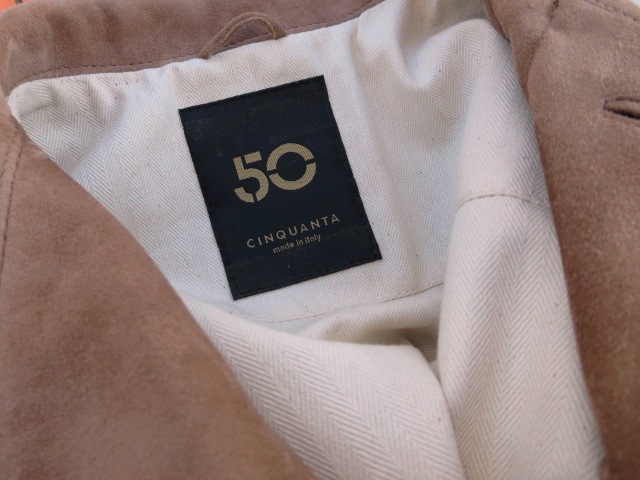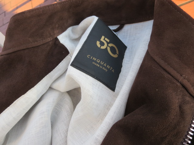EMMETI(エンメティ)のシングルライダースが表革でいくなら、【CINQUANTA/チンクアンタ】は、スウェードでご提案します。先にご案内のM-65型タイプと同じゴートスウェードですが、サイジングはコンパクト。こちらは、サイズ46で着ています。