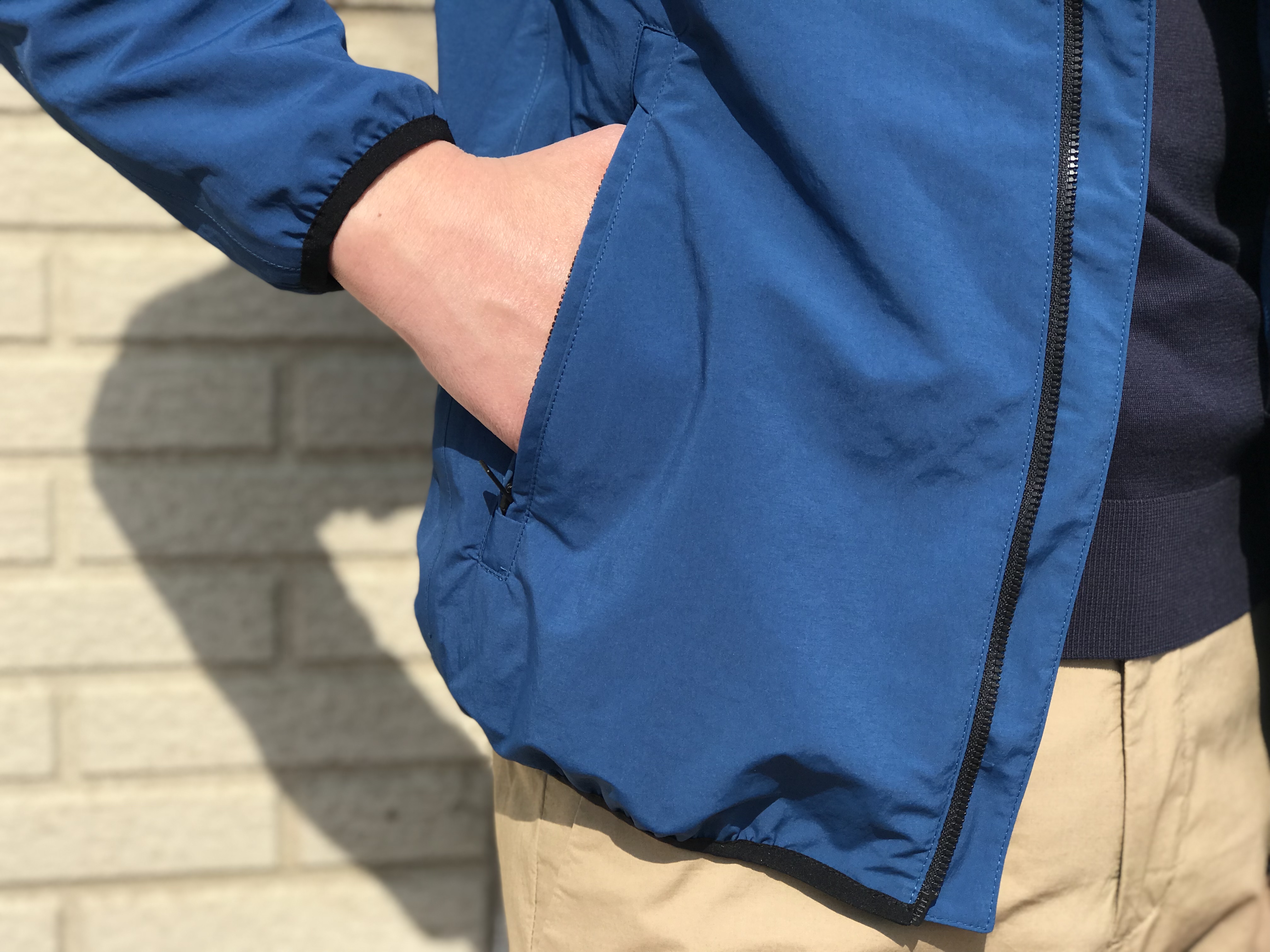 身頃部分や袖にも裏地はなく、撥水加工が施された軽量のパーカは、外出時についつい手が伸びてしまう万能アイテム。クリアなカラーリングとスタイリッシュなデザインは、ちょっとしたお出掛けから旅行まで、大人の日常着として幅広く活躍するブルゾンです。