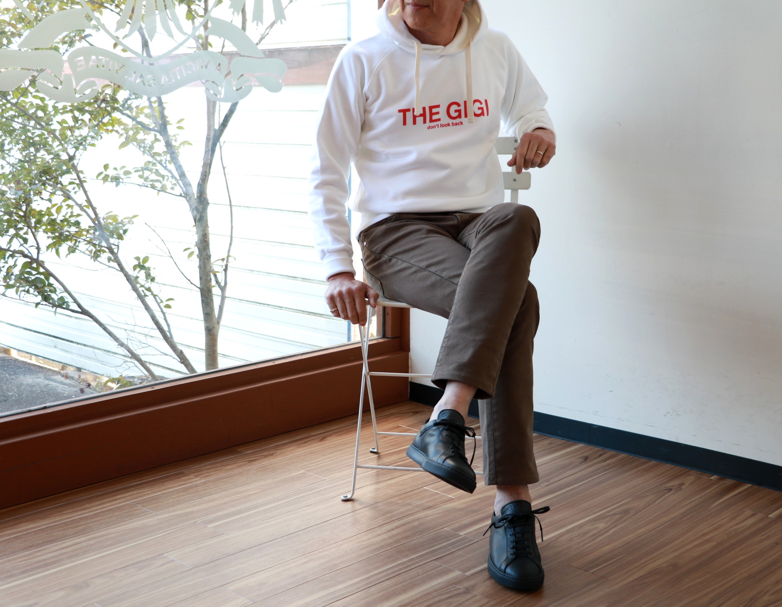 小出しではなく、今週から一気にお見せする【THE GIGI/ザ・ジジ】の2019年春夏コレクション。ロゴ入りのスウエットパーカーの足元を飾ったのも【C.QP/シーキューピー】でした。