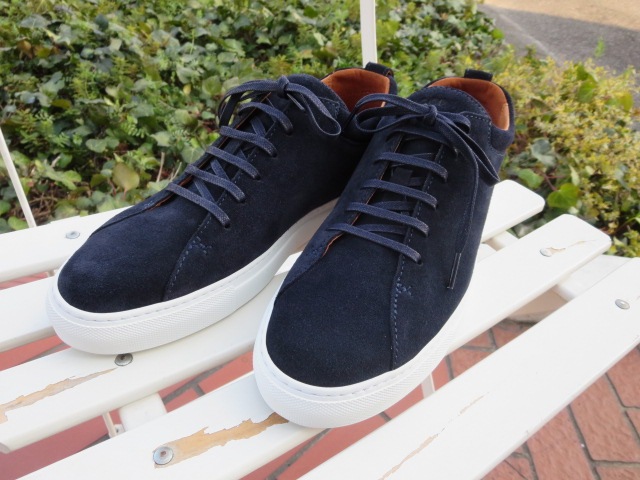 スウェードのネイビーからも目が離せません。まず色合い。深みのある良いネイビーとホワイトのソールの美しいコントラスト。出番の多いスニーカーだけに、ドレス靴同様、バリエーションで楽しみたいものです。