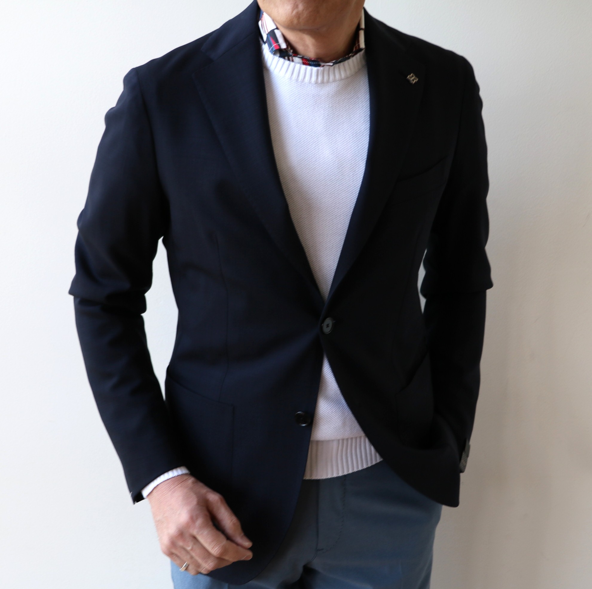 しんがりは、同じく「MONTECARLO」でセレクトしたネイビーのジャケット。ただ今までとは、やや趣が異なります。