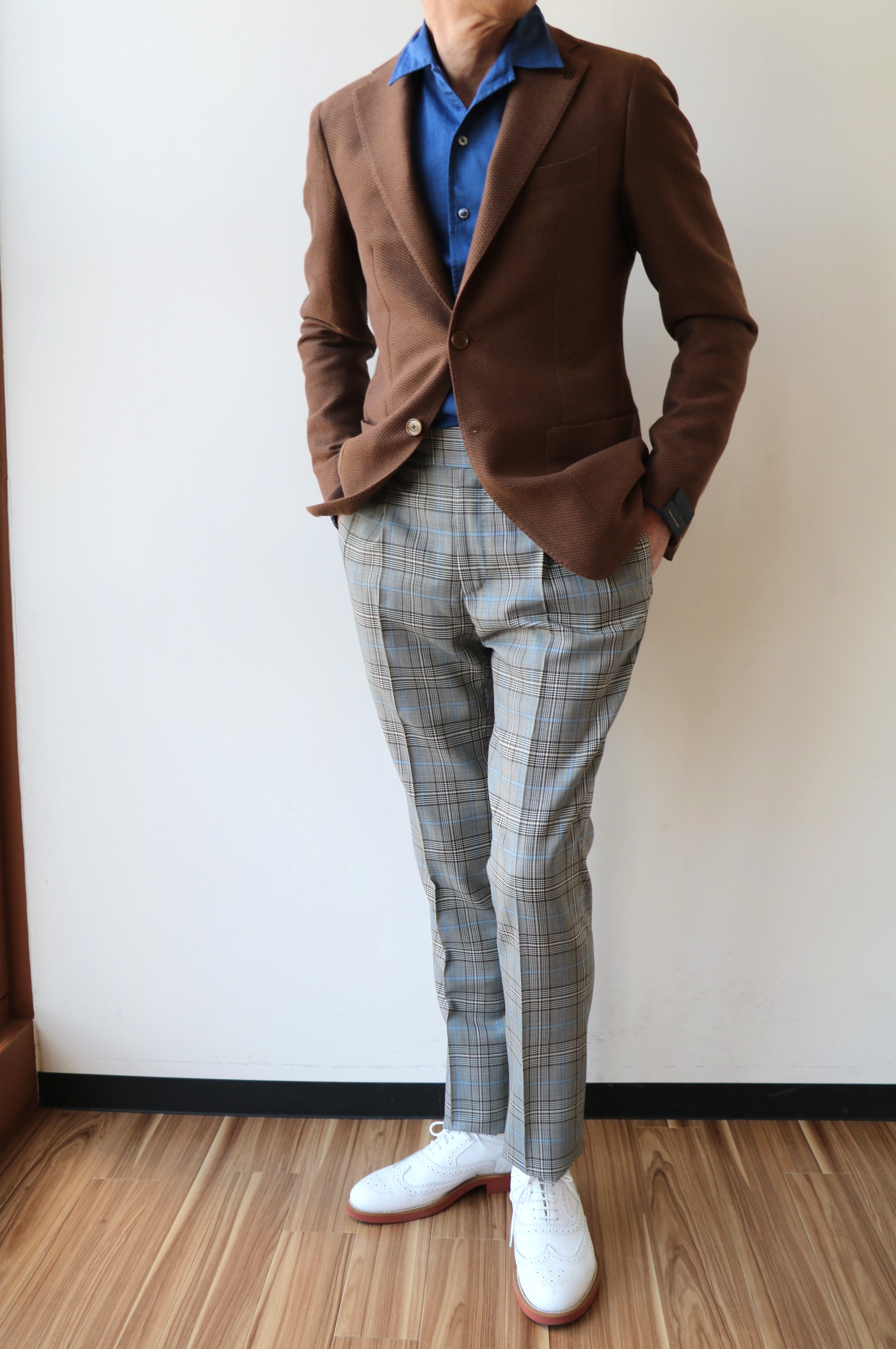 スポーティーなオックスフォードに比べ、エレガントな表情をみせるロイヤルオックスフォードの2色。衿型は、ポプリンと同じ、ノータイで着た際にも美しいワイドスプレッドの「386」を選んでいます。お勧めは、いつもよりワントーン濃いブルー。バイニングの力量がこもっているはずです。
