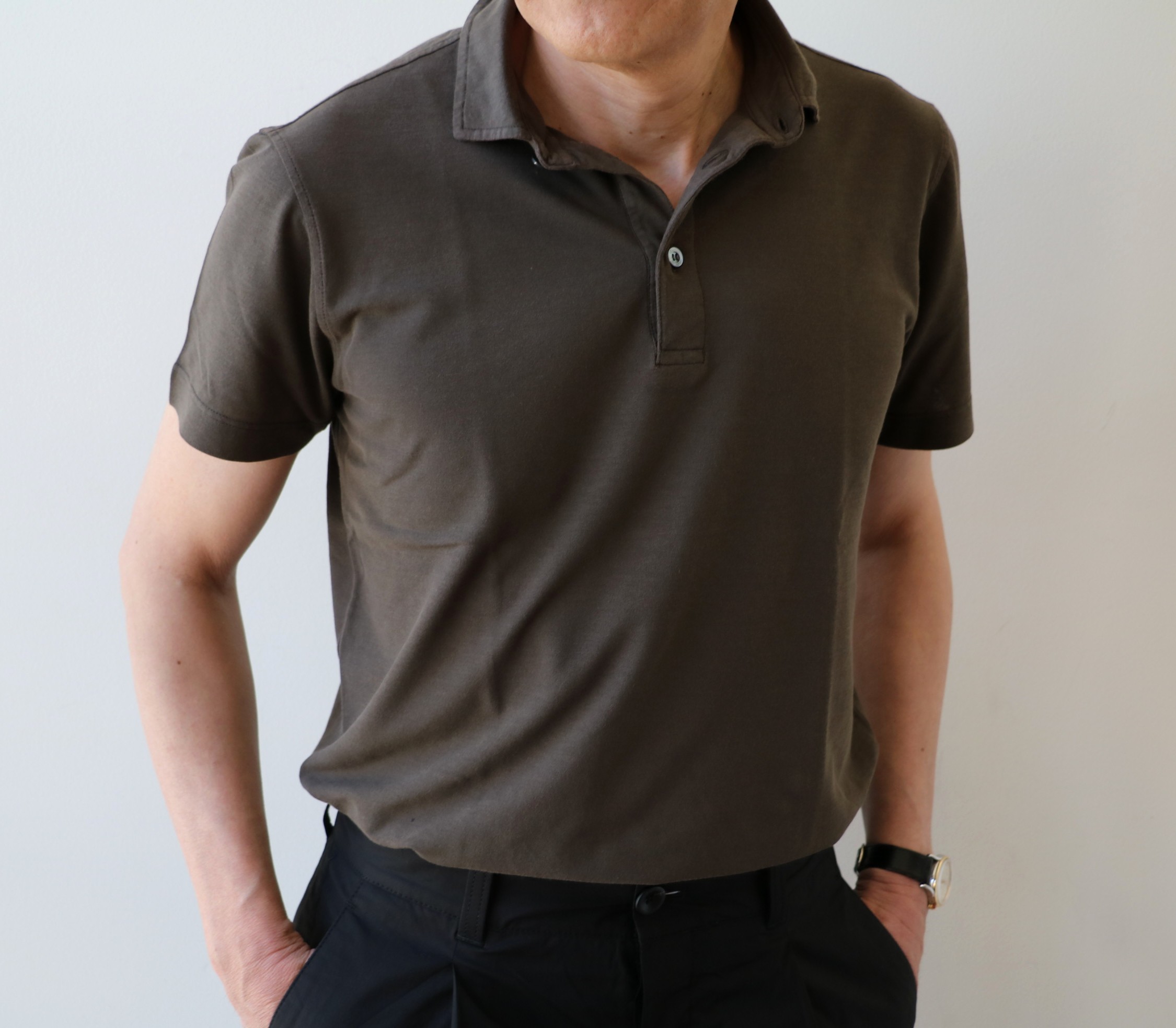 インに着たポロシャツは、こりら。未公開のDRUMOHR(ドルモア)で、現在、蔵庫/マガジーノで展開中です。