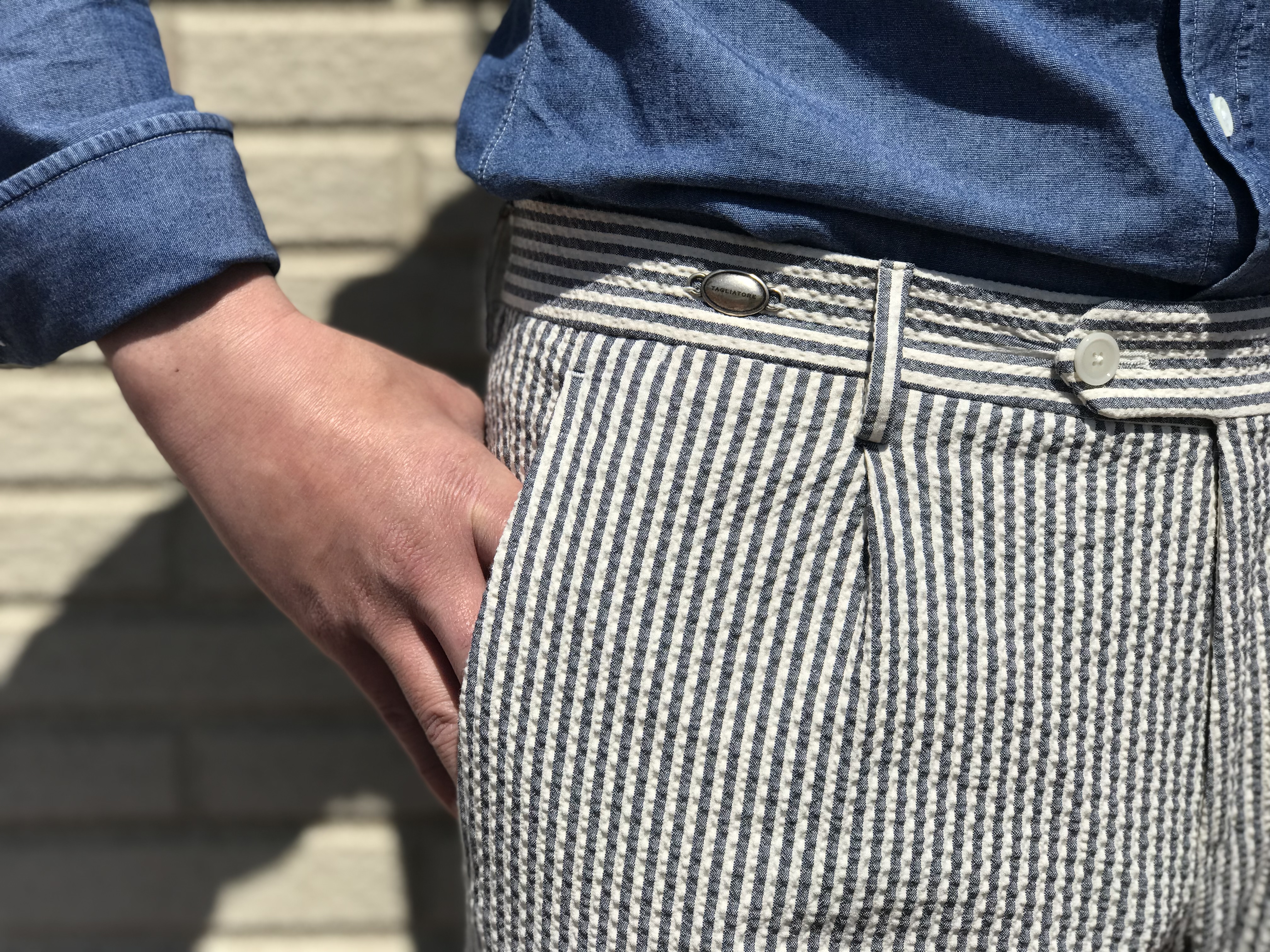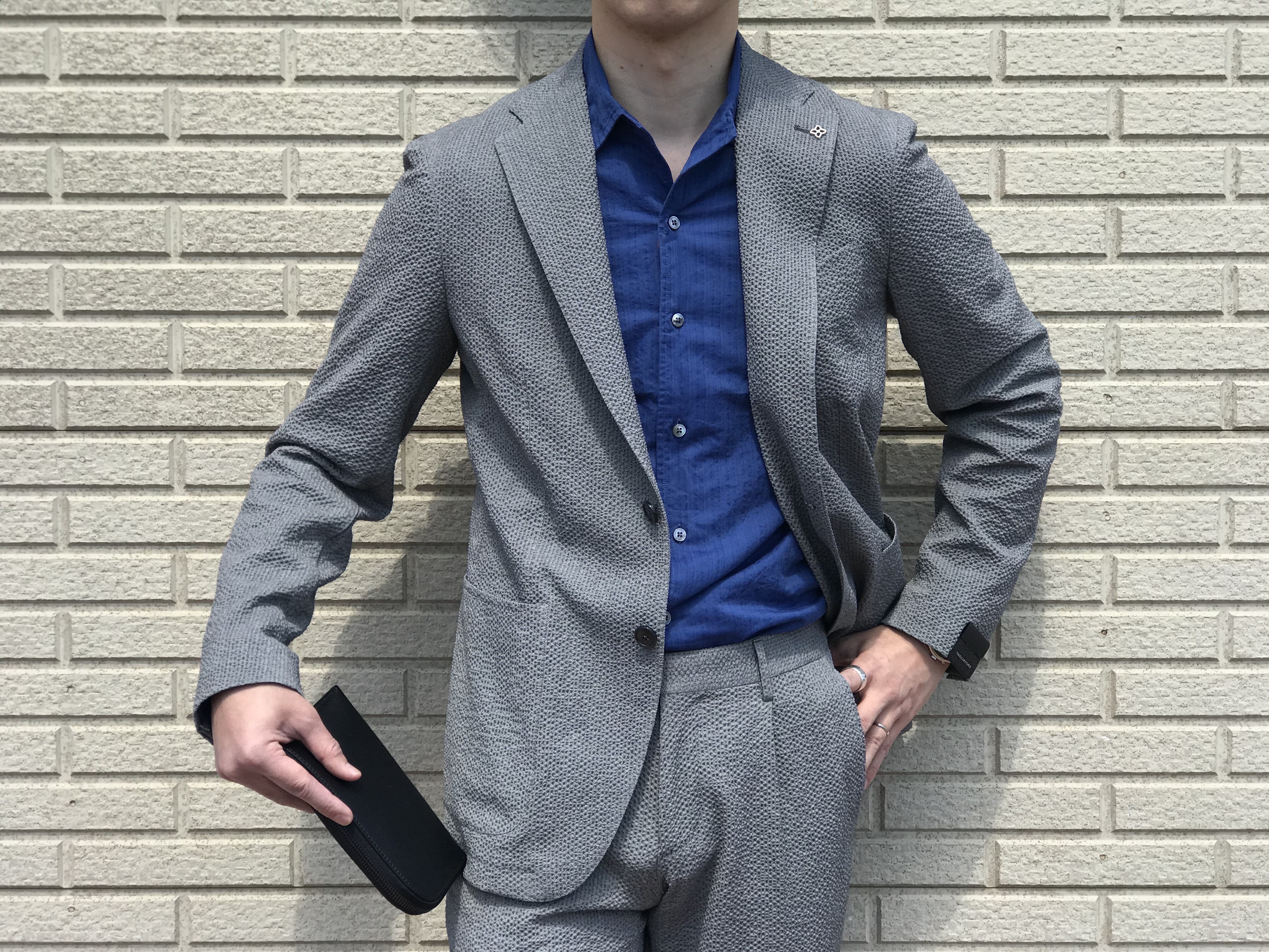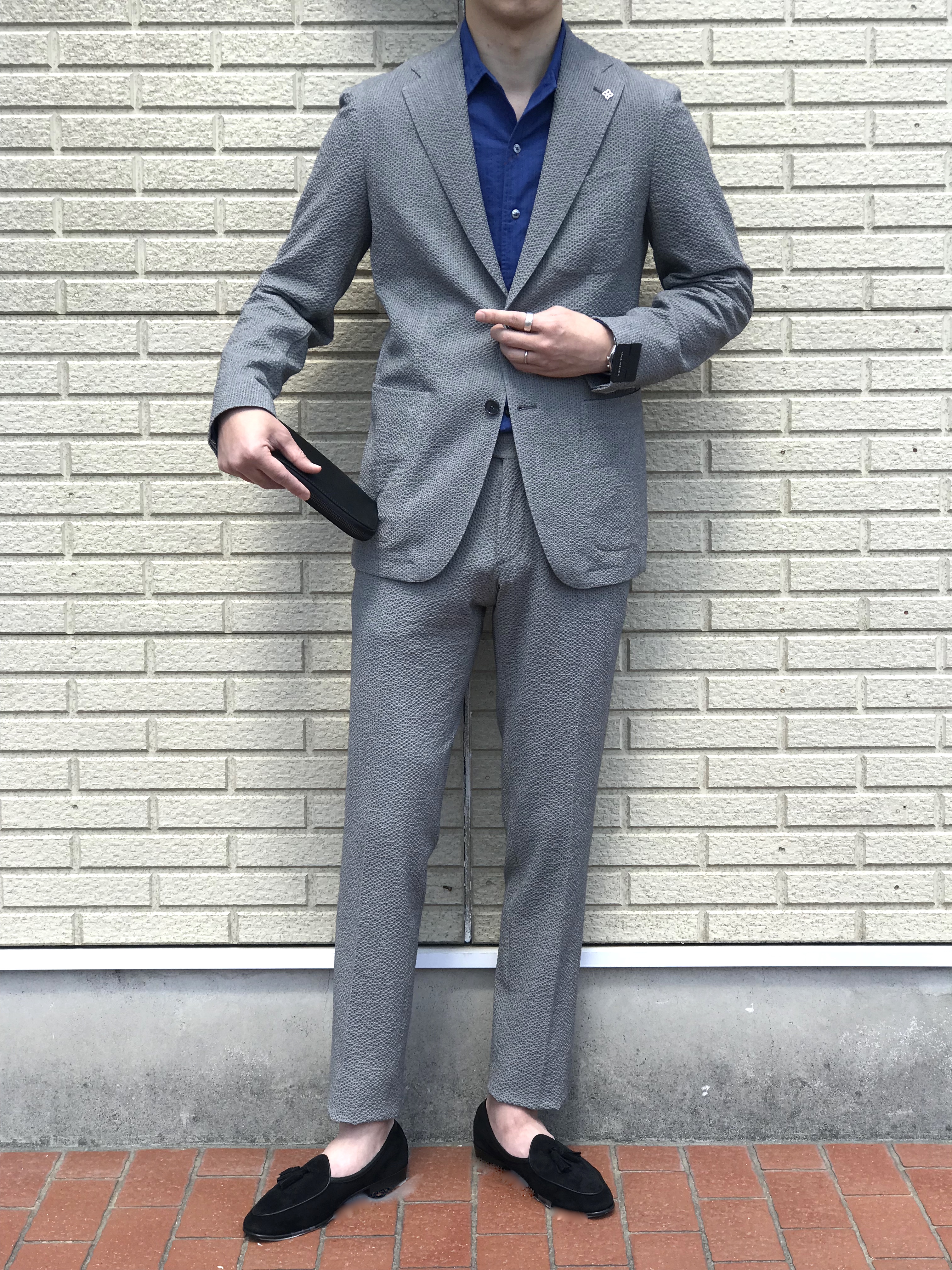さて、本日のご案内です。本日は、【TAGLIATORE/タリアトーレ】から届いたシアサッカー生地のセットアップスーツ4型をタカイがご案内します。