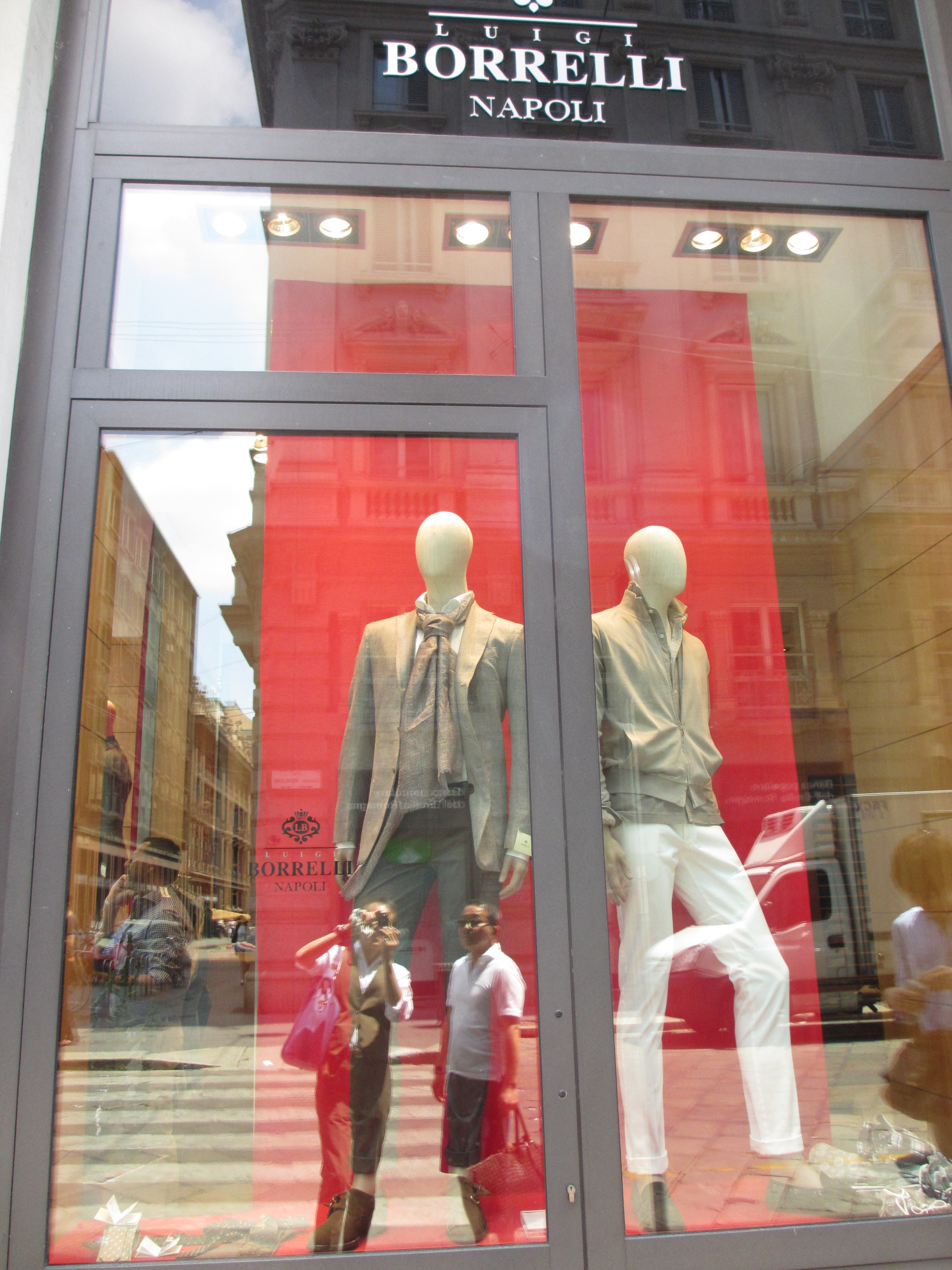 ミラノにあるショップです。見上げるほどの立派なウィンドウには、トータルスタイルでの提案がなされています。昼時で鍵を閉める寸前でしたが、購入目的を告げたら、快く中に。