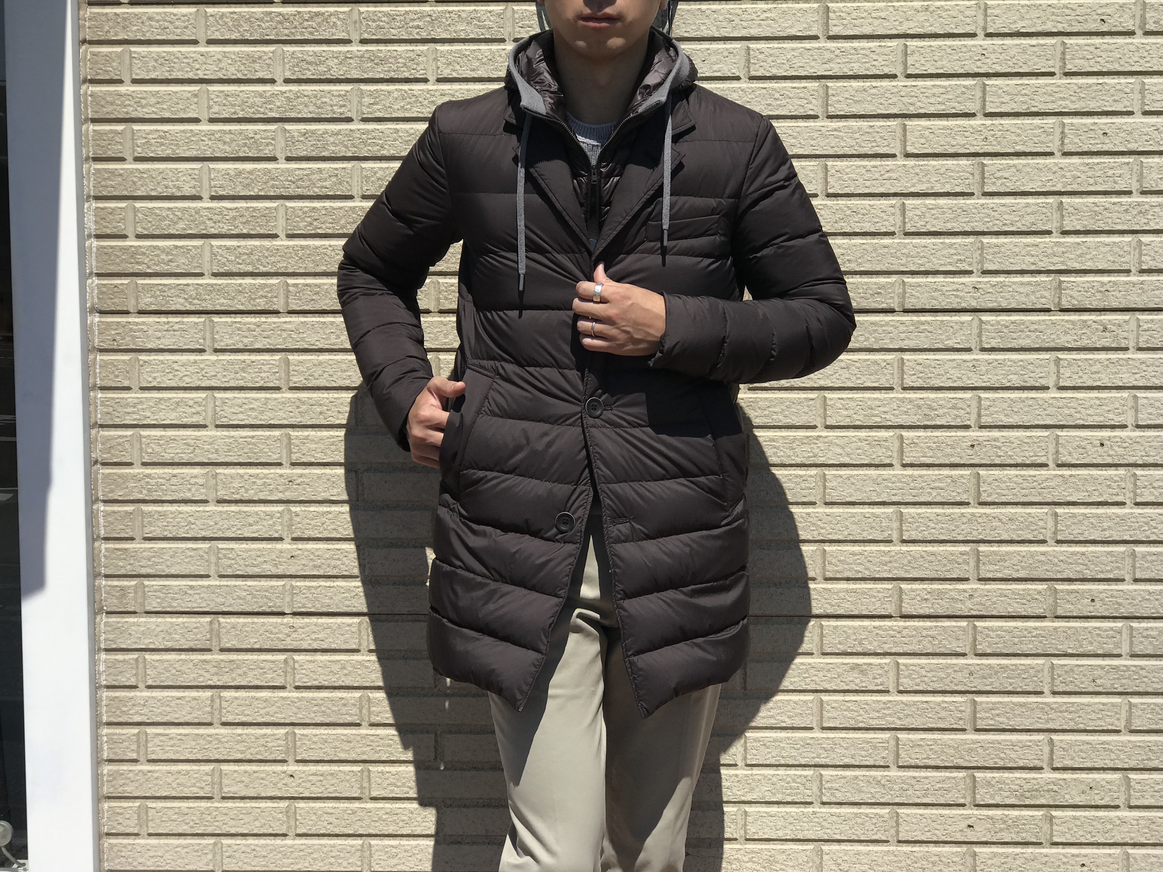 さて、本日ご案内するのは、この暑さにも関わらず好調な動きを見せている【HERNO/ヘルノ】。皆さまからの期待値が高いブランドだけに、33℃まで気温が上がった本日も、しっかりご案内していきます。