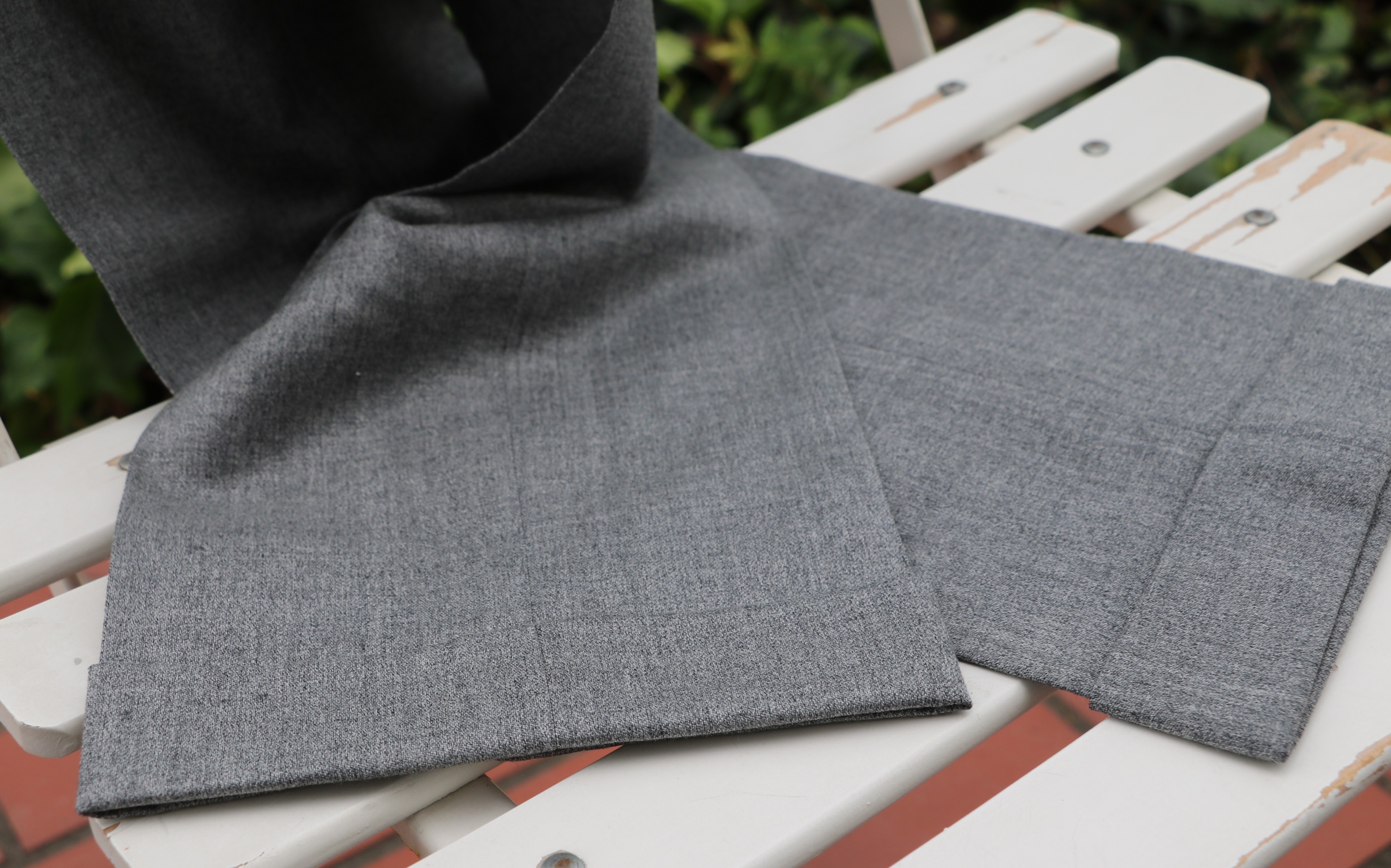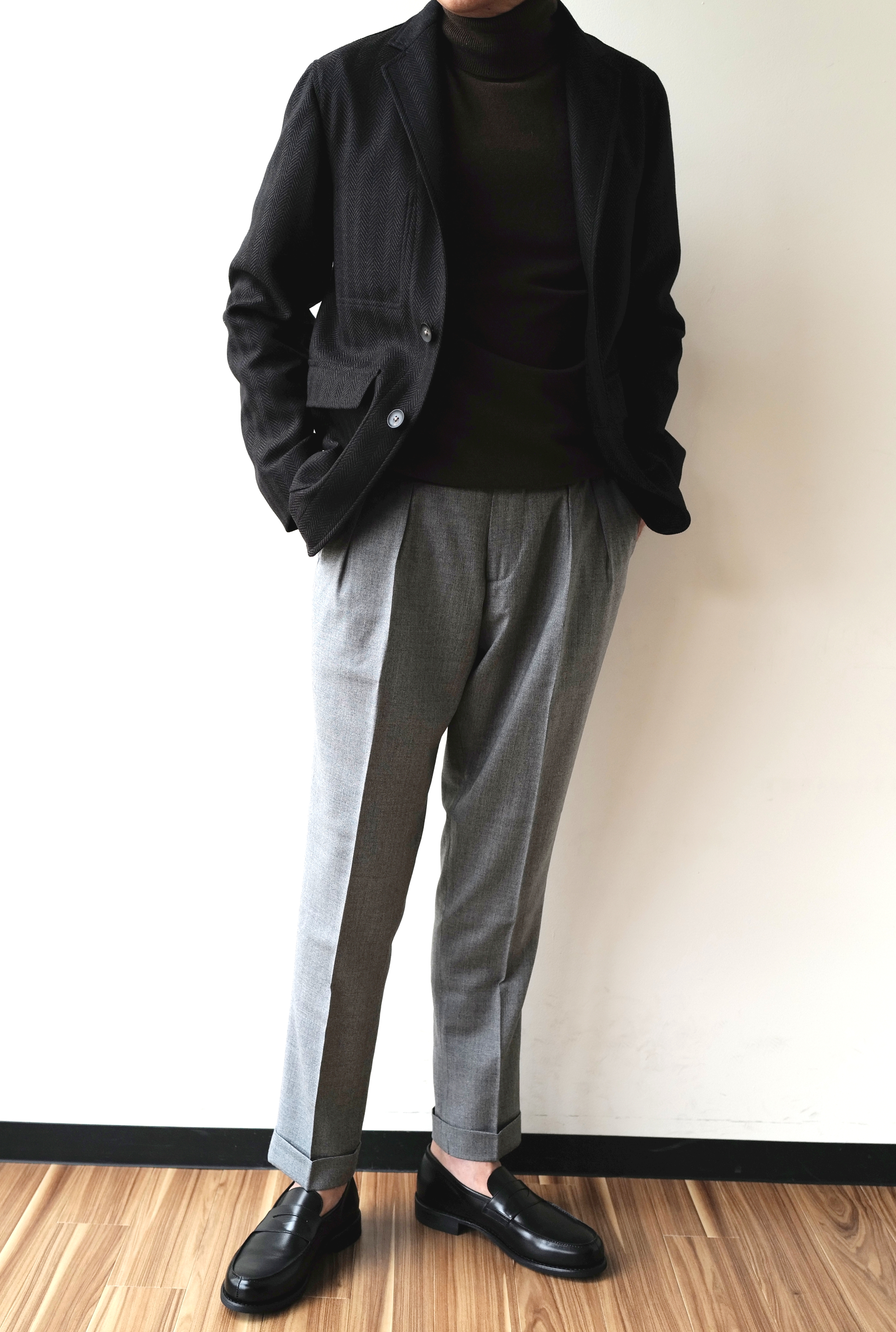 同じウールでも、こちらはフランネル級の千鳥格子。毛羽のないウエイトのしっかりとしたチャコールグレイでセレクトです。こちらはウォッシャブルではありません。