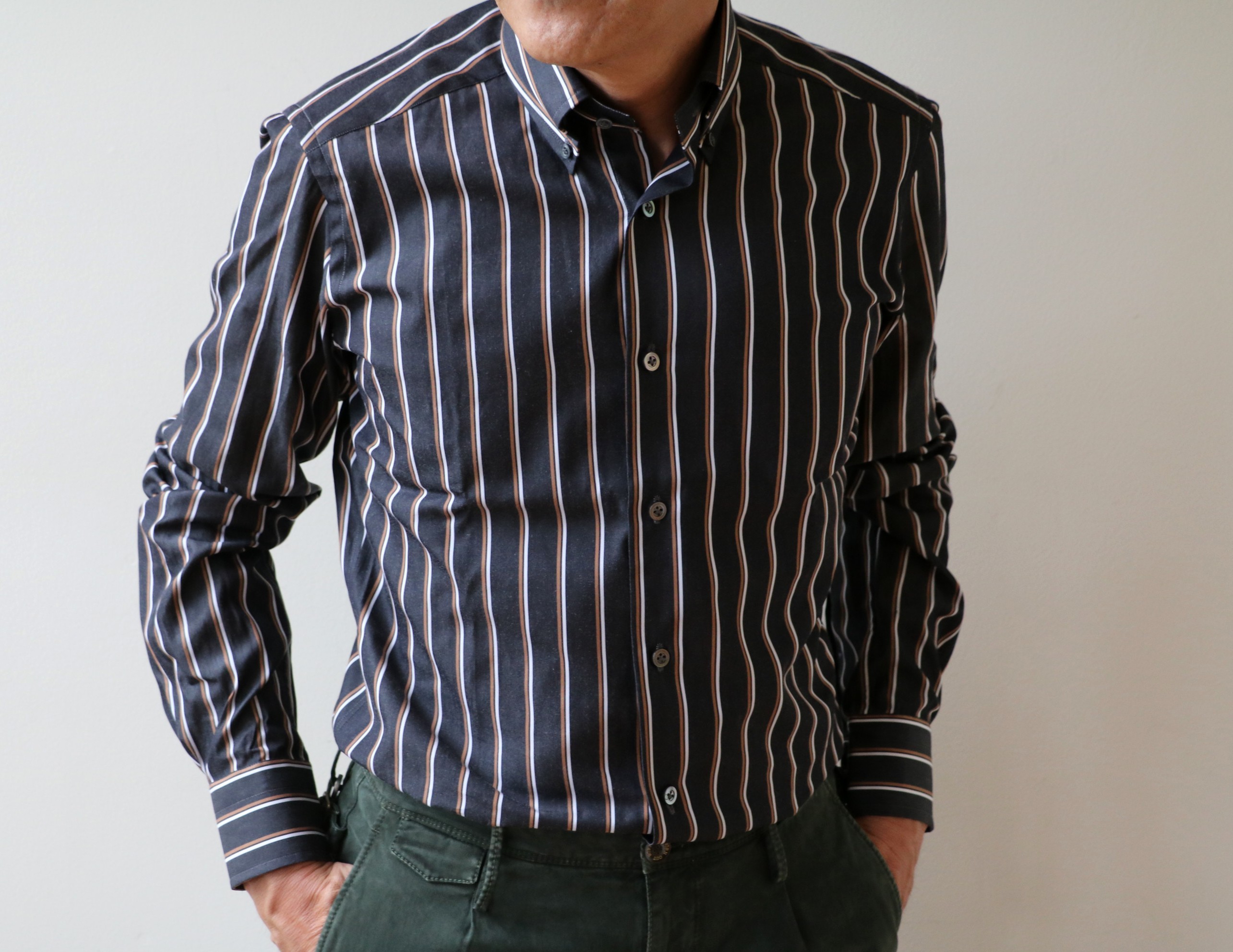 MODEL:「387」モダンストライプ柄B.Dシャツ