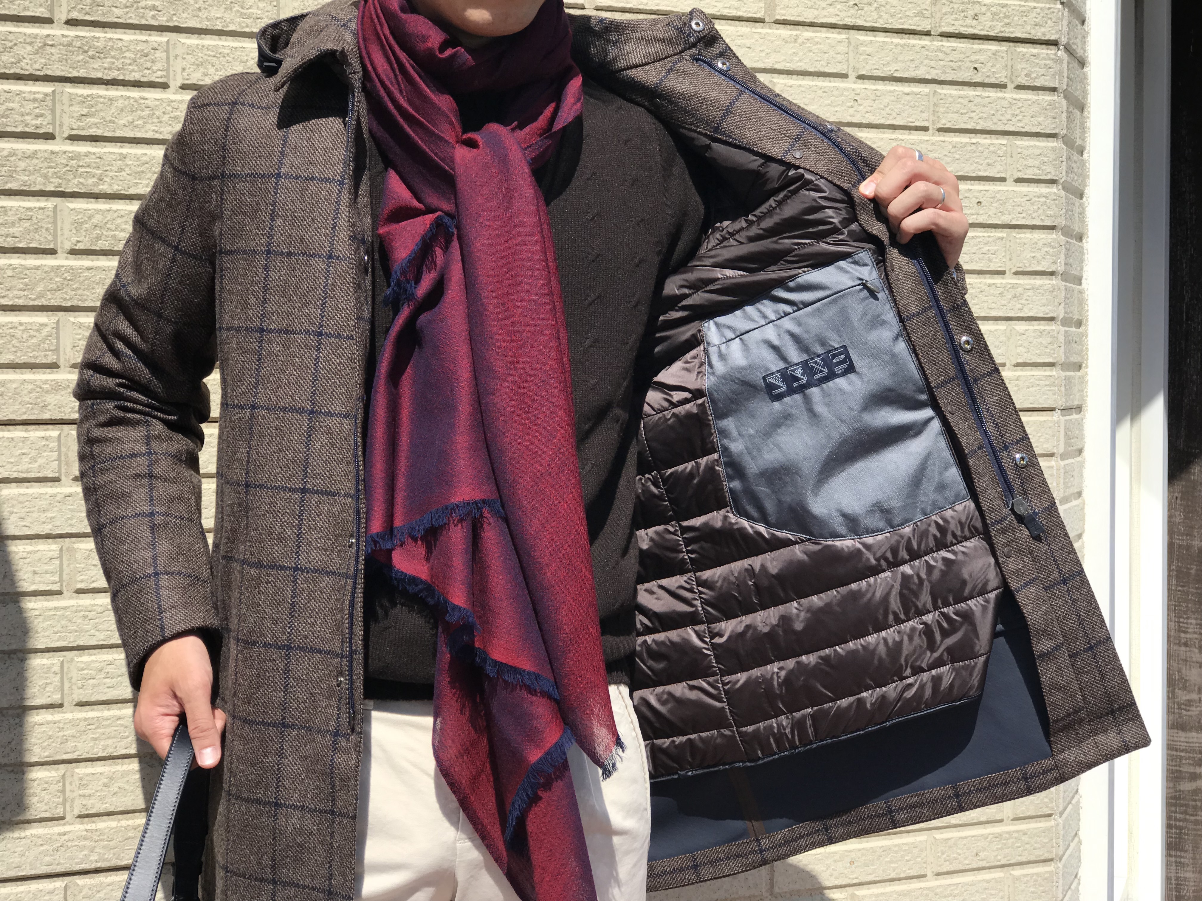 ライニングを外せば、シーズンのスタートから投入できるバルカラーコートに変わります。特に、ビジネスシーンでは活躍の場が大いに広がるはずです。
