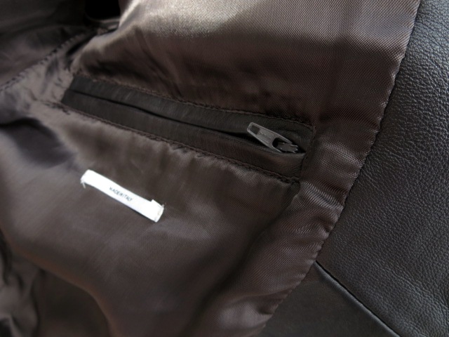 セレクトカラーはブラウン(T.MORO)一色。触り心地がサラッとしなやかでソフト、かつ頑丈なゴートスキン(山羊革)です。内側両サイドにはジップ付きポケットが付き、背のアクションが動作を楽にします。タイトすぎない、大人に優しいサイズ設定も好感度です。