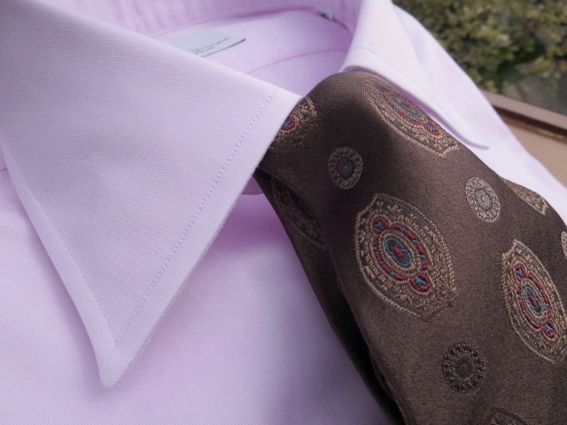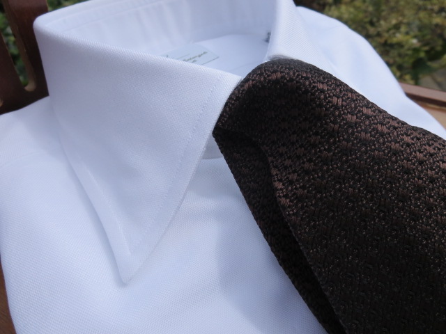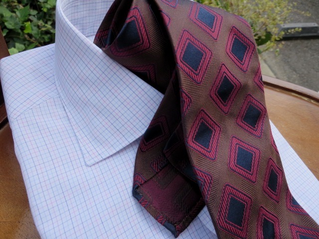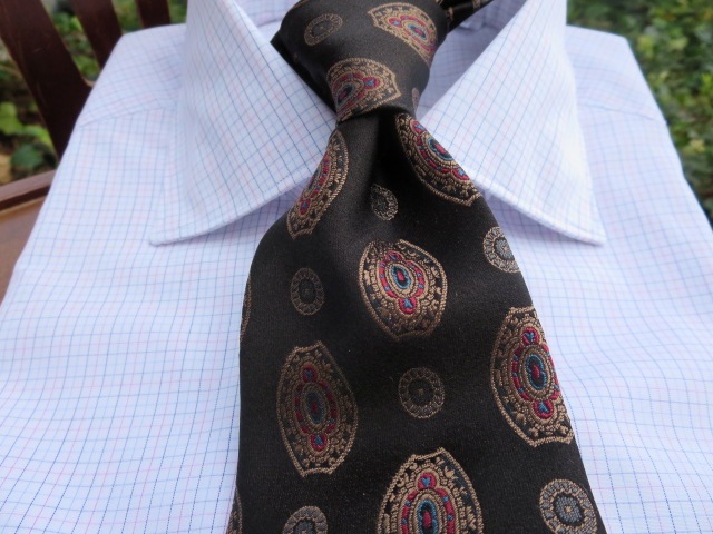 楕円形の飛び柄です。コーディネートで使っていたのが、ブラウンのタイです。