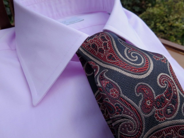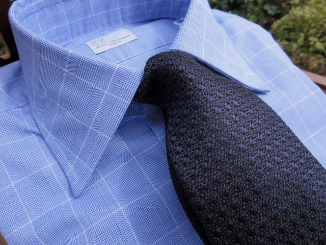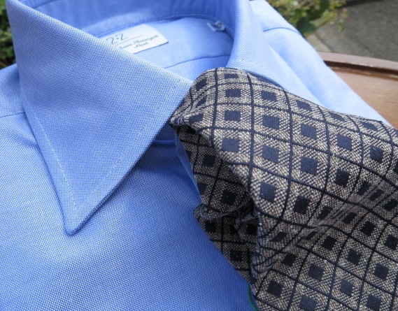 合わせたシャツはMaria Santangelo、パンツはPT01、靴はBAUDOIN&LANGE、ネクタイはこの後ご紹介です。