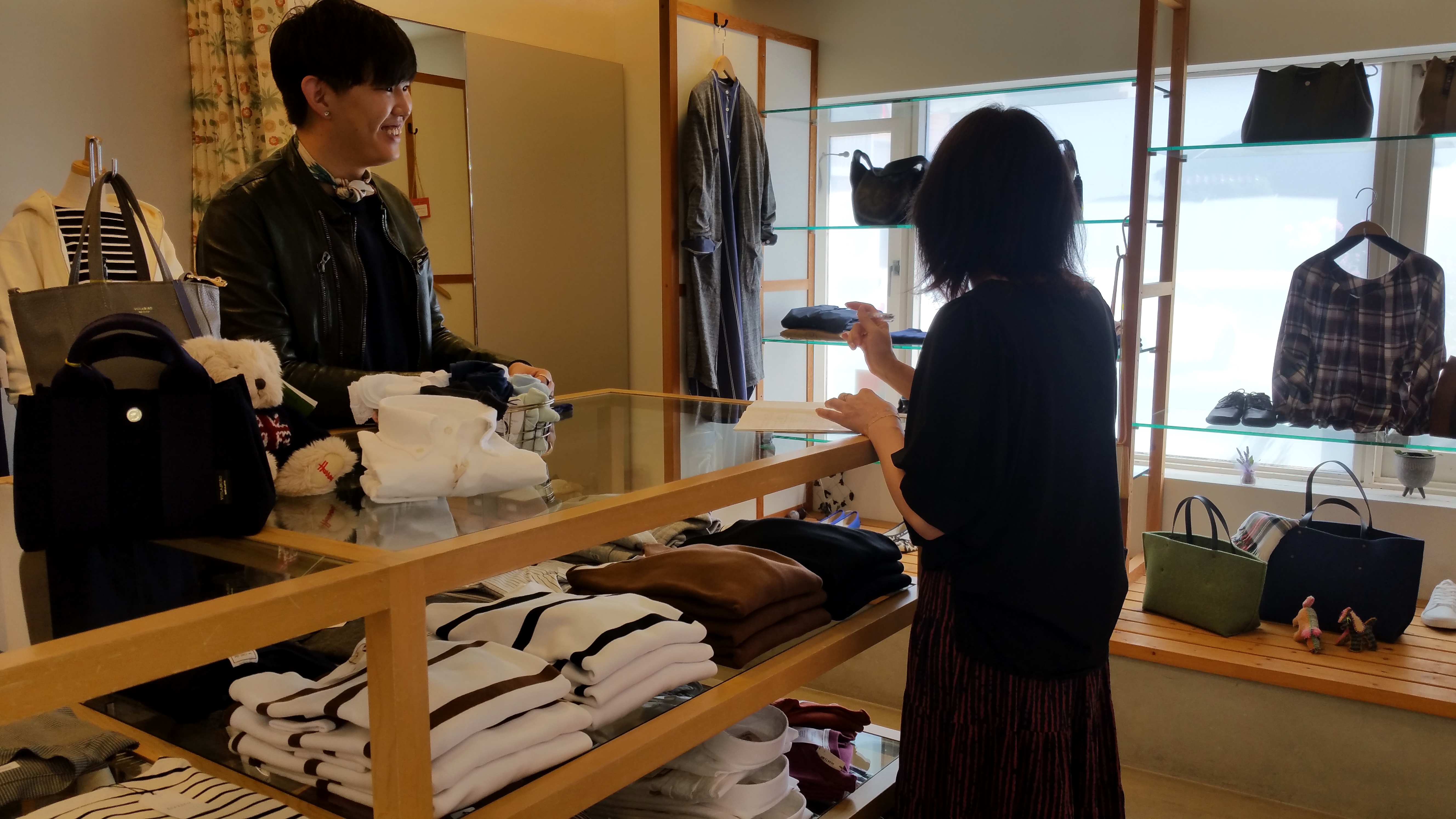 レディースのスタッフと何やら打ち合わせをしているジュニア。コンセプトショップのテーマ「ワードローブ」について語っているのかもしれません。楽しい時間でしょうね。