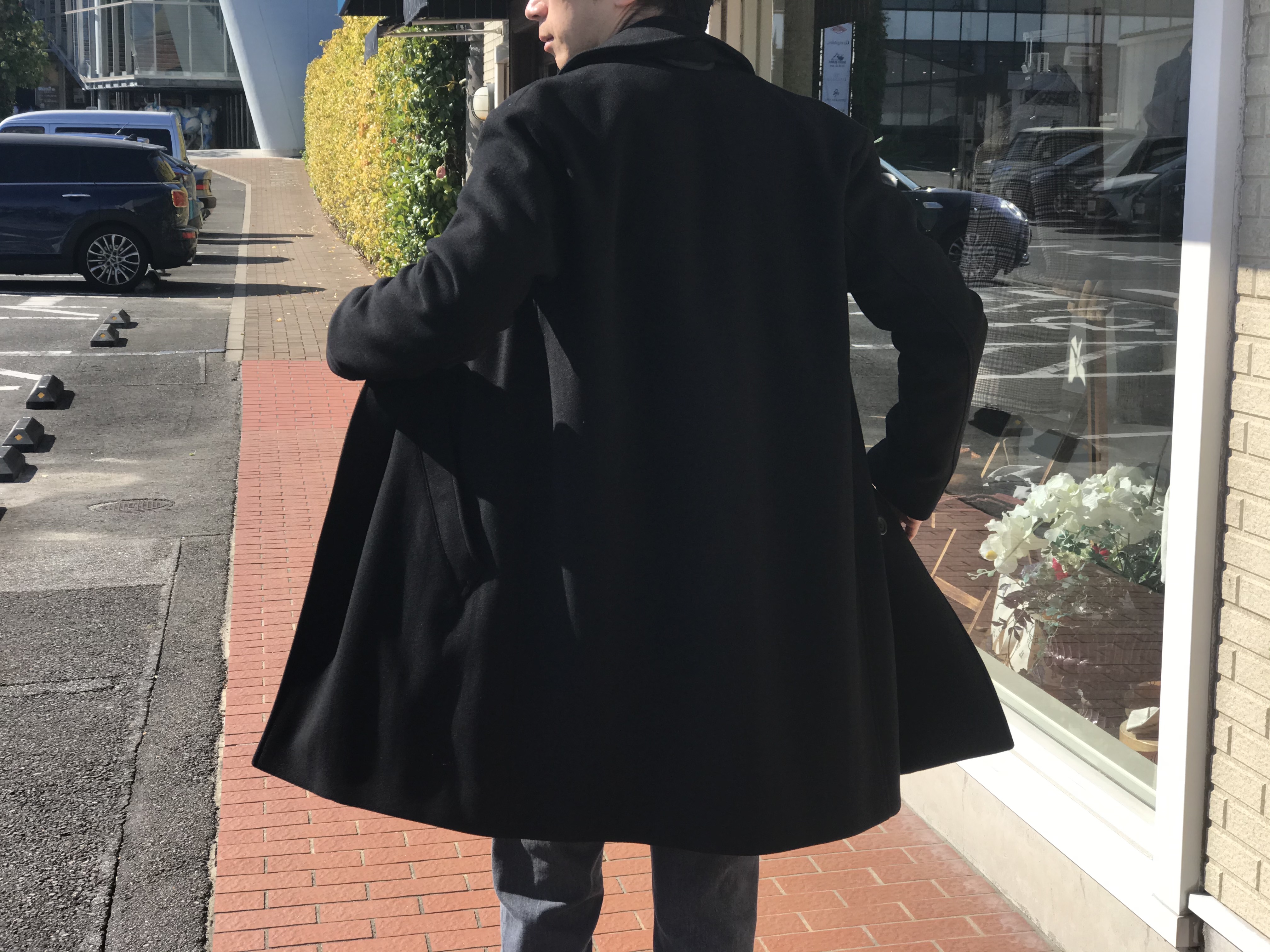 Aラインが作り出す後ろ姿は、ウールコートに見る堅苦しさはなく、リラックスした気楽で気軽な着心地です。