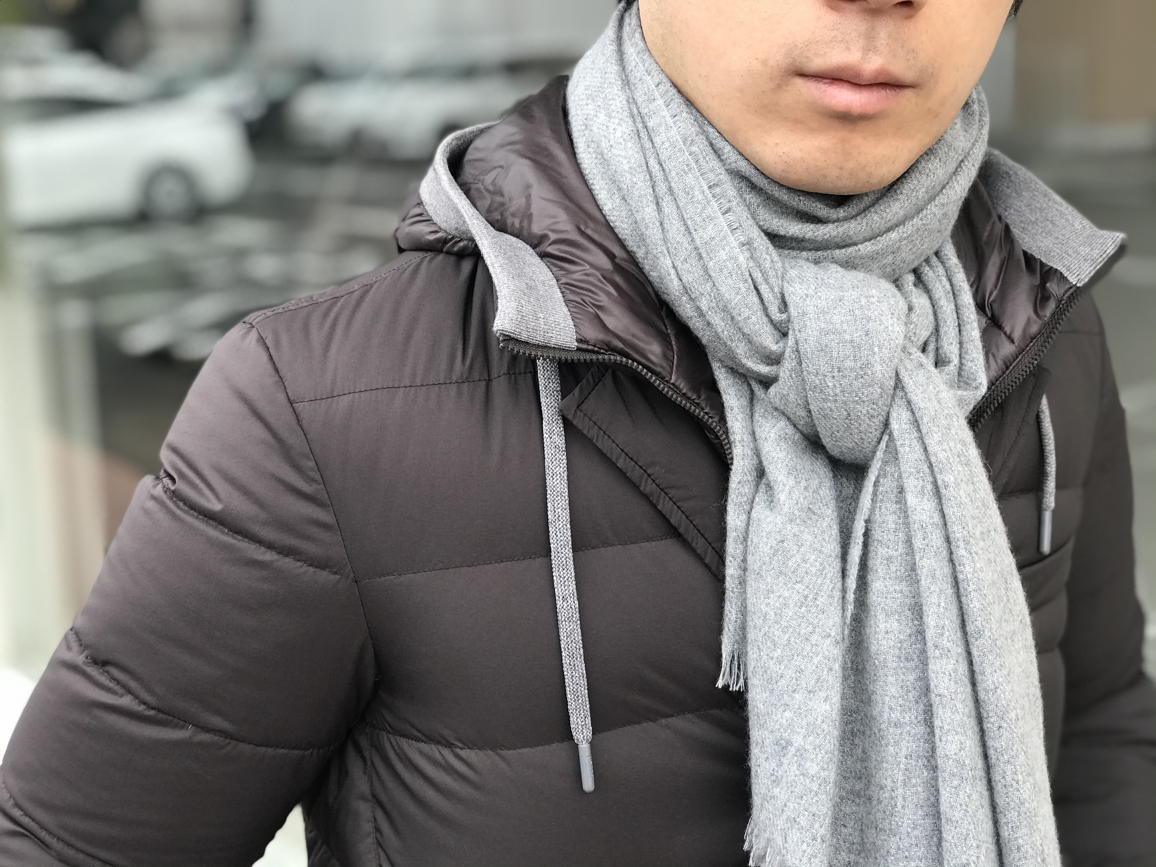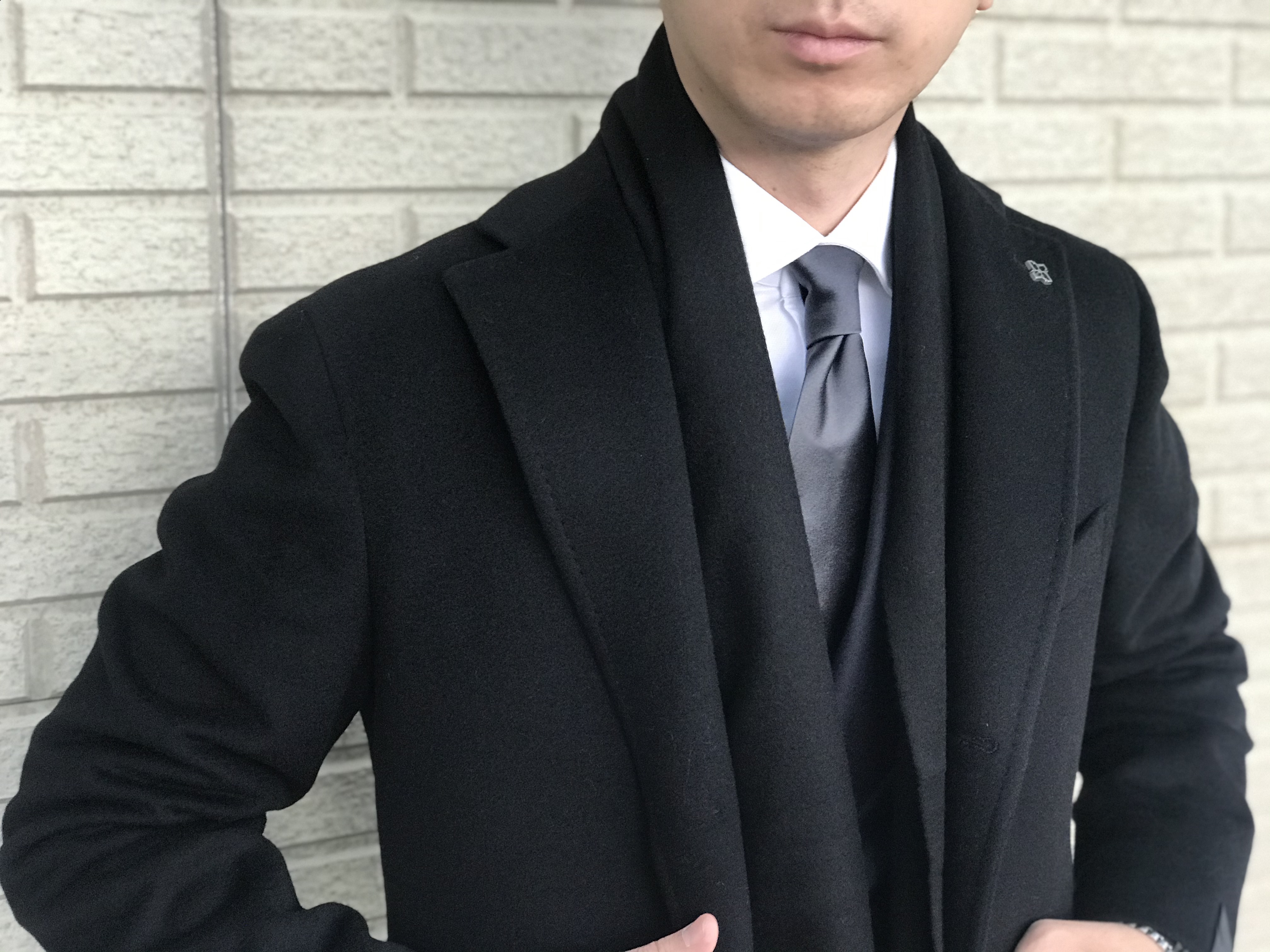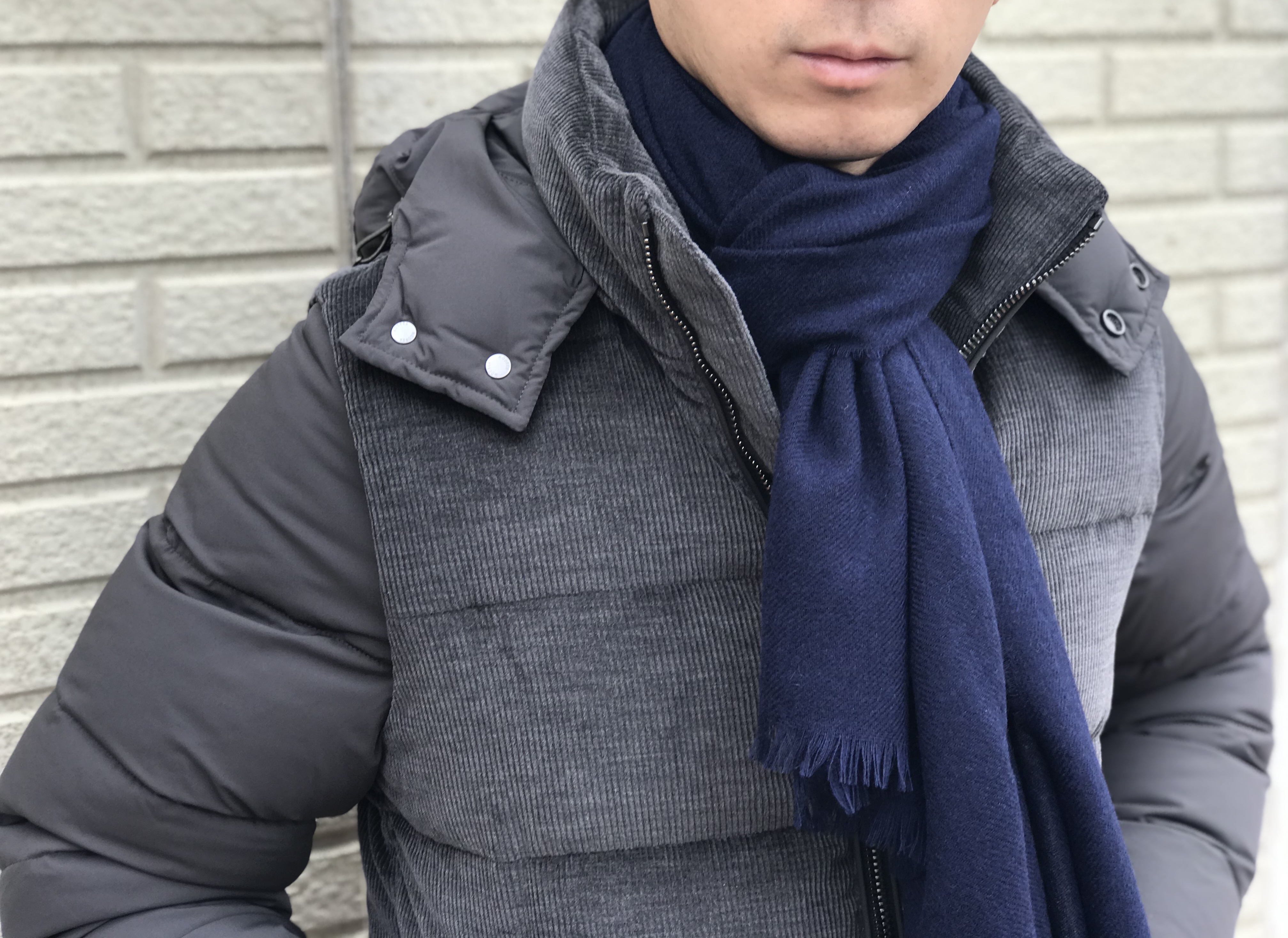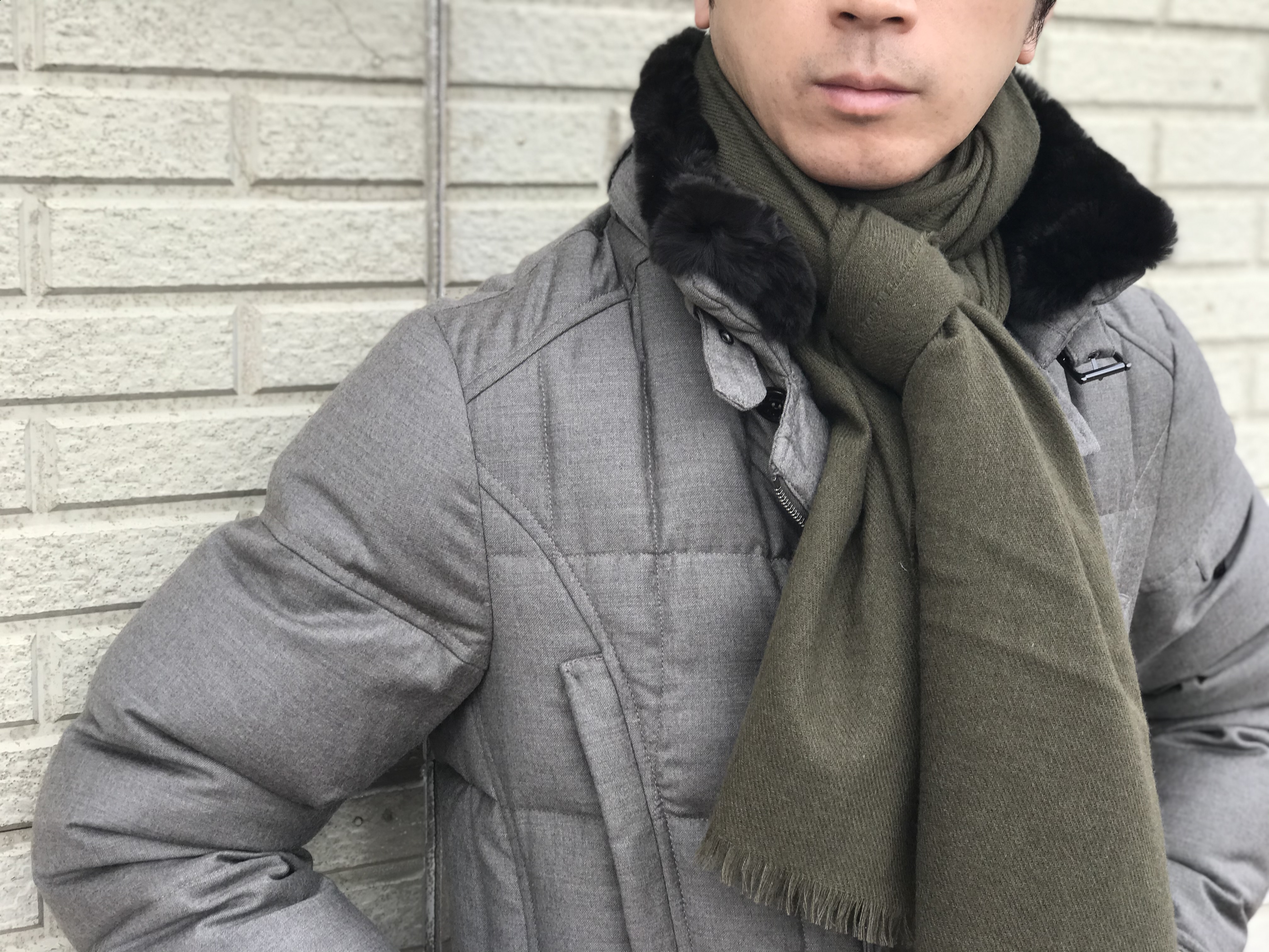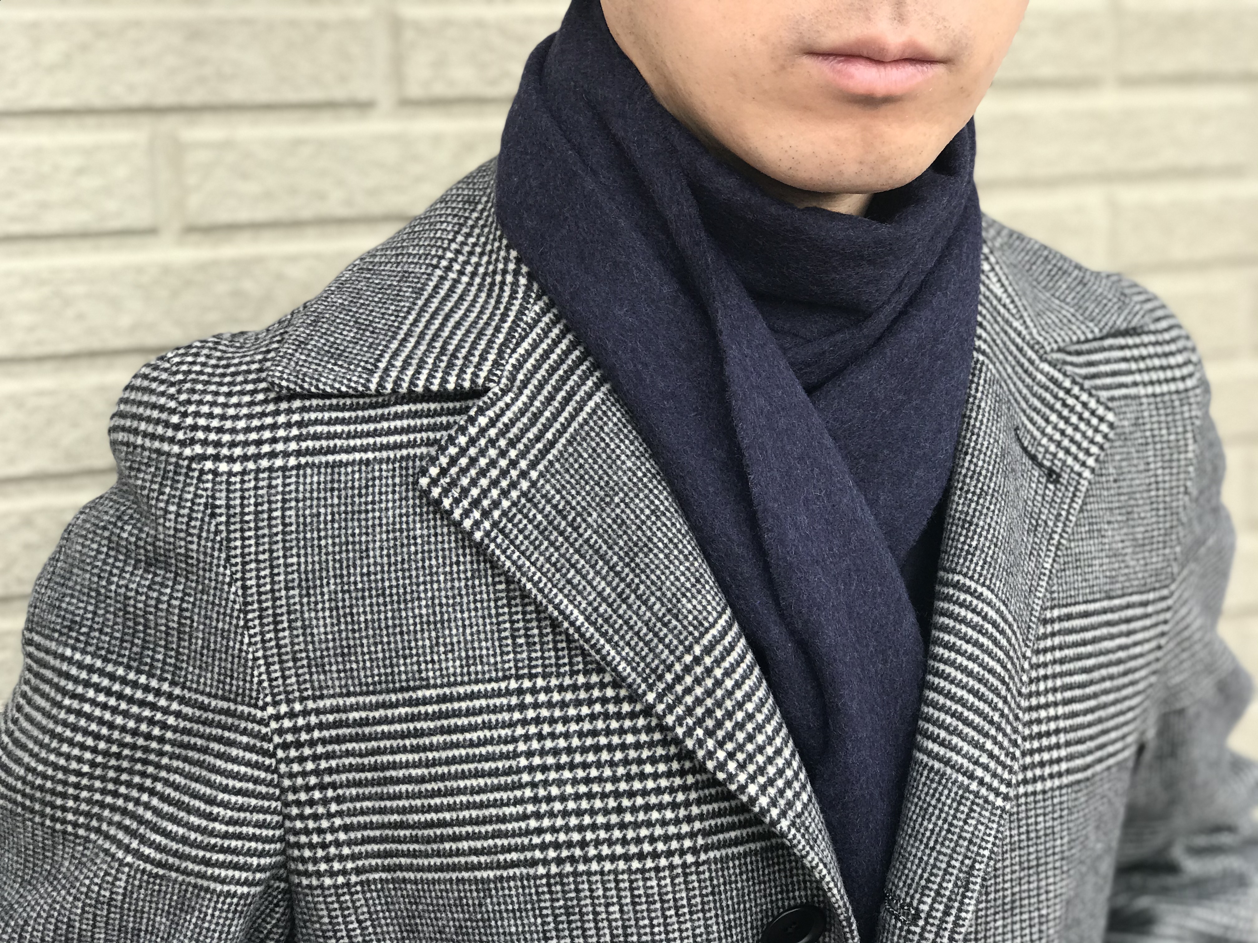 ご覧のようにボリュームは抑えられ、しっとりとしたカシミアは、首元を優しく包み込んでくれます。