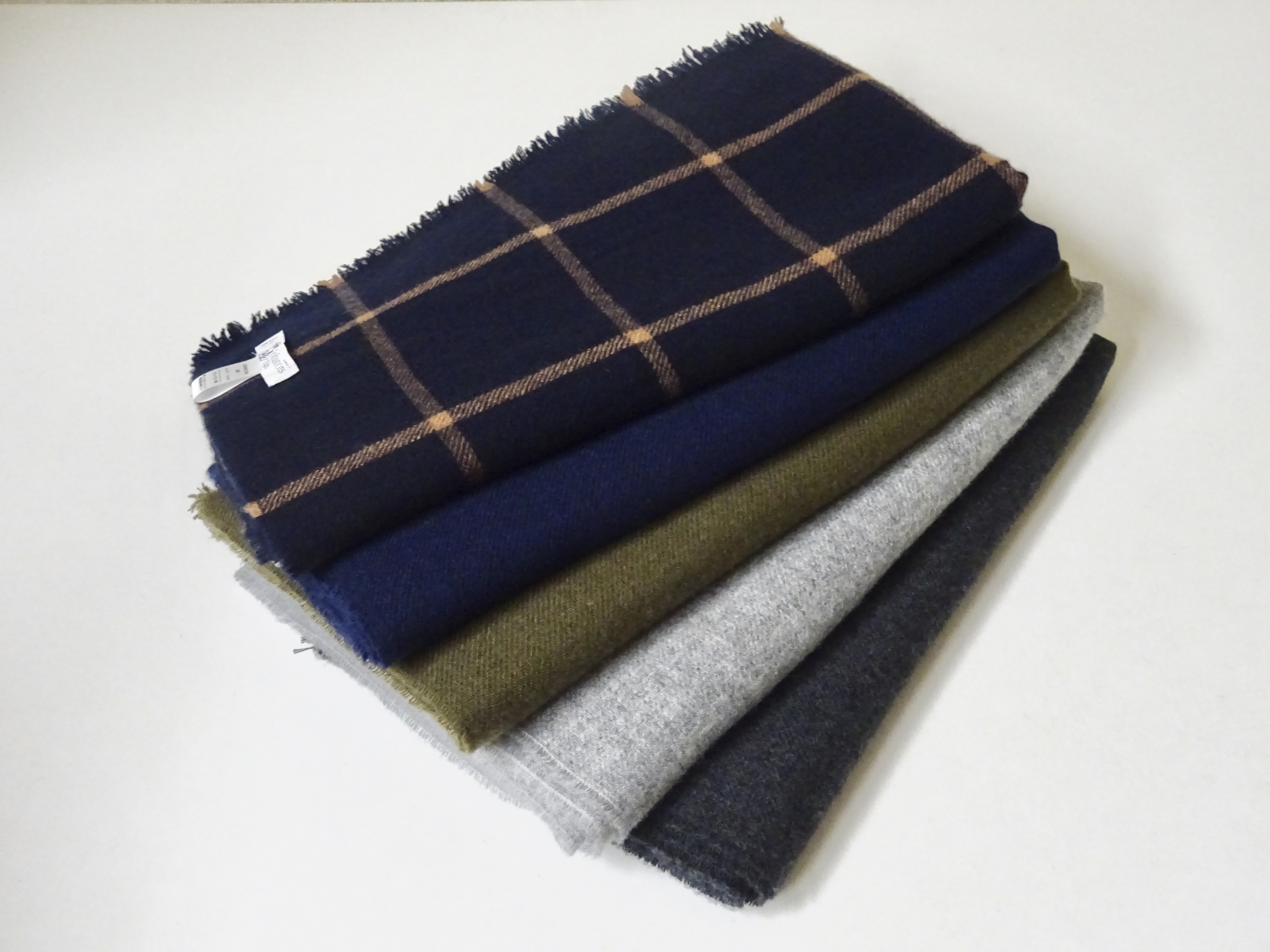 今回ご用意したのは、30×180cmのマフラー型。もちろん、全てカシミア100%です。