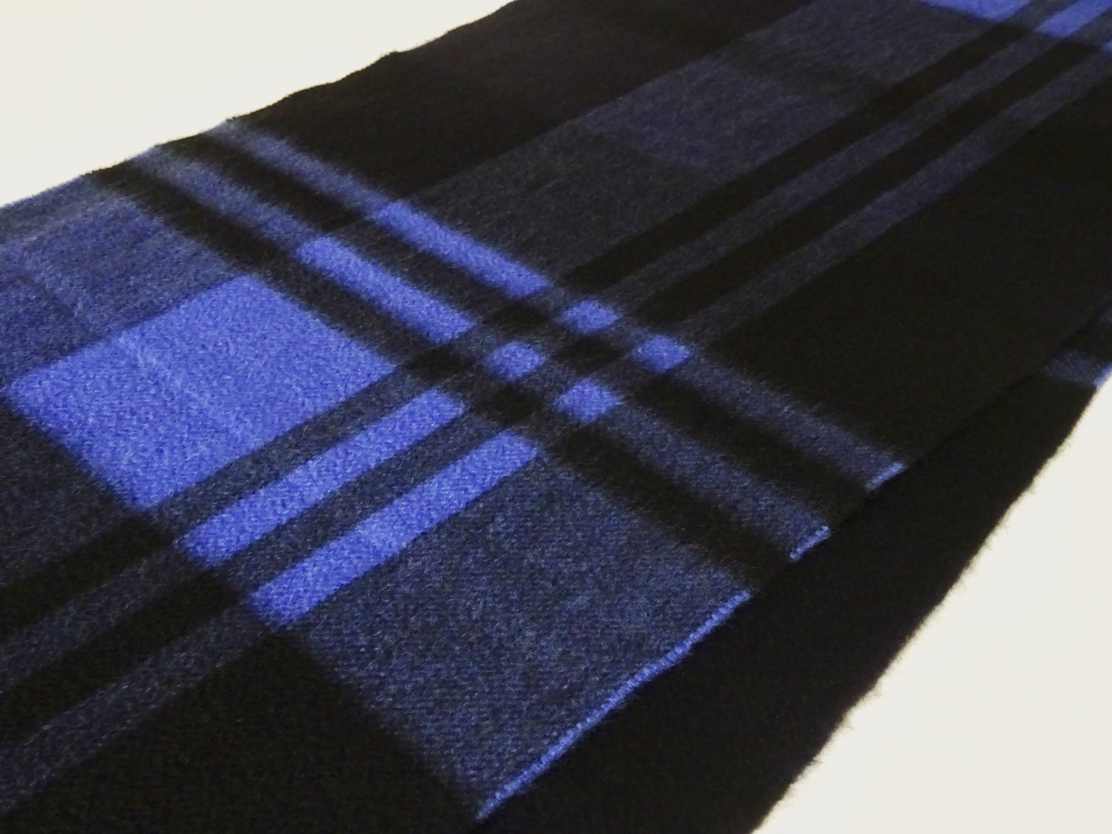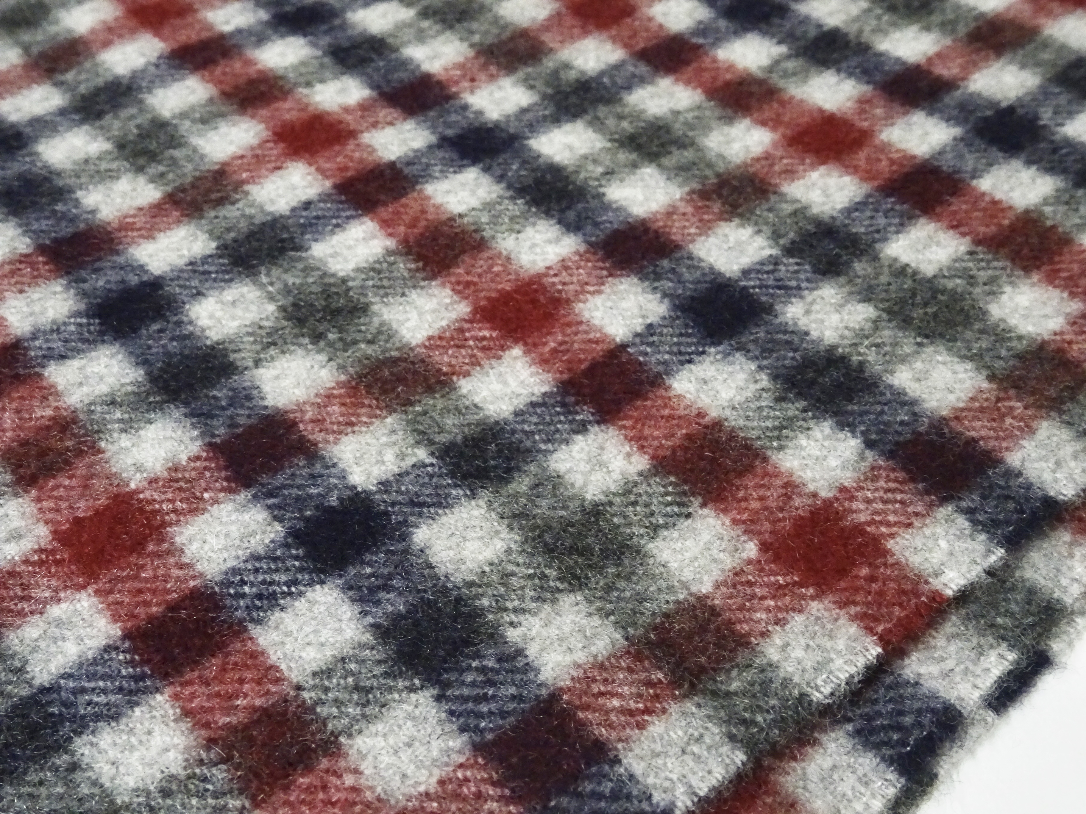 最初のご案内は、マルチカラーのチェック柄。繊維が細いカシミアだからこそ、芯の奥まで染色が行き渡り、ビビットな発色が生まれます。細かい多色使いの柄をキレイに見せるのは、高品質のカシミアを高い技術によって織り上げたからでしょう。