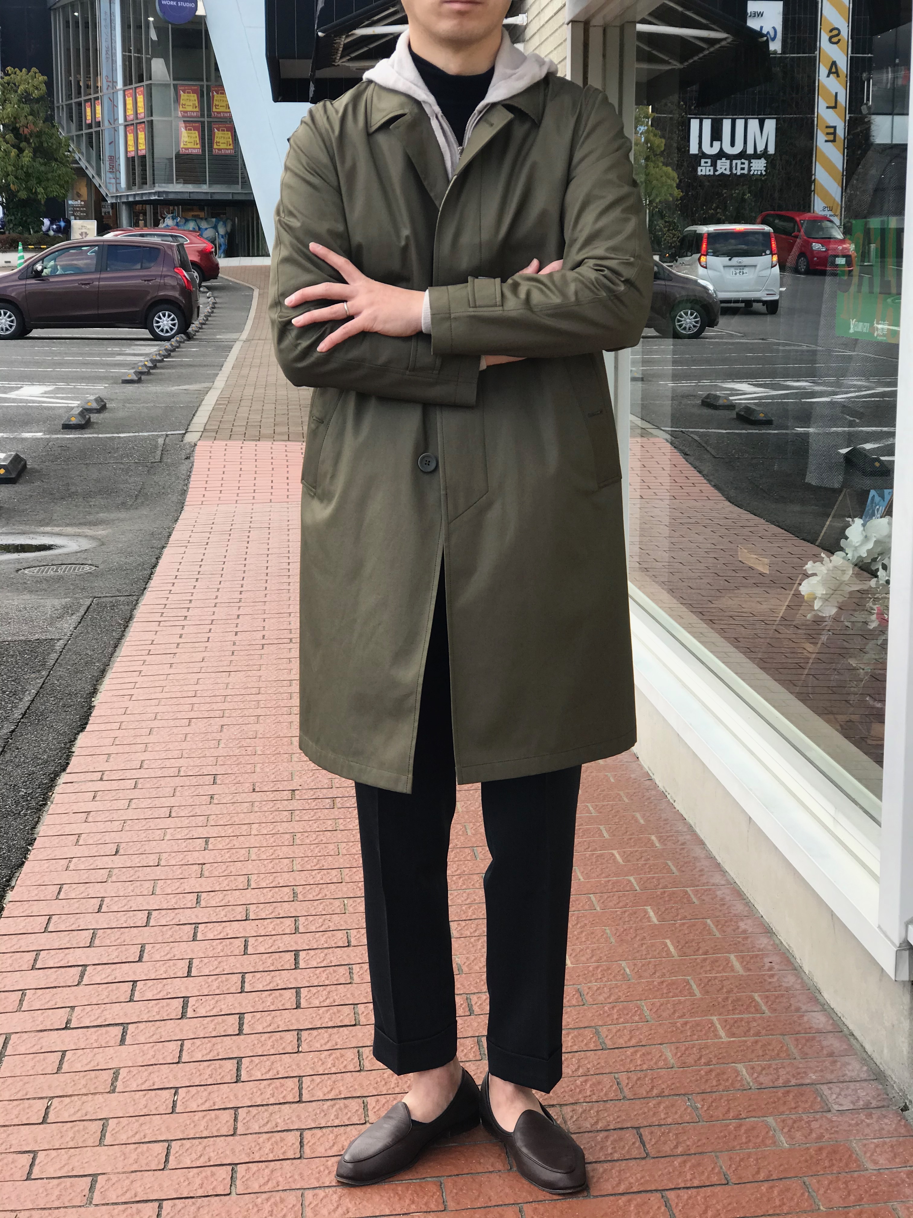 合わせたのは、Settefili CashmereのカシミアジップパーカとBorelioのベネシャンストレッチパンツ。風よけのバルカラーコートと保温性のあるカシミアのニット。この地方や同じような気候の場所では、むしろこのくらいの組み合わせが丁度良いのかもしれませんね。