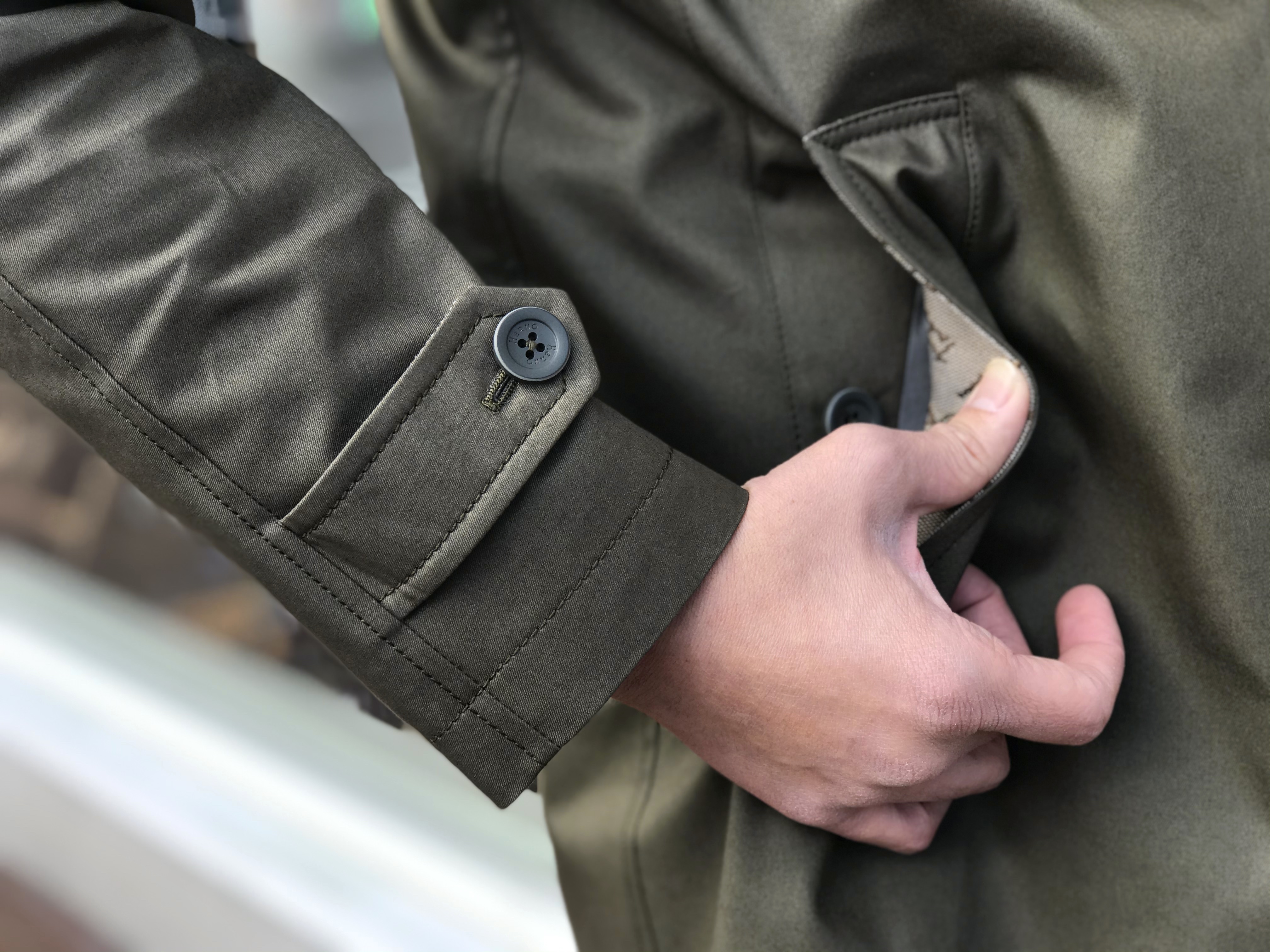 '19年春夏のバイイングでテーマにしたのはスポーツでしたが、この'20年春夏では、ワークやミリタリー、ヴィンテージの要素を【HERNO/ヘルノ】的に提案したものをセレクト。素材は撥水加工が施されたコットン100%で、カラーは、使い込むごとに風合いの熟し具合を楽しめるオリーブカーキです。