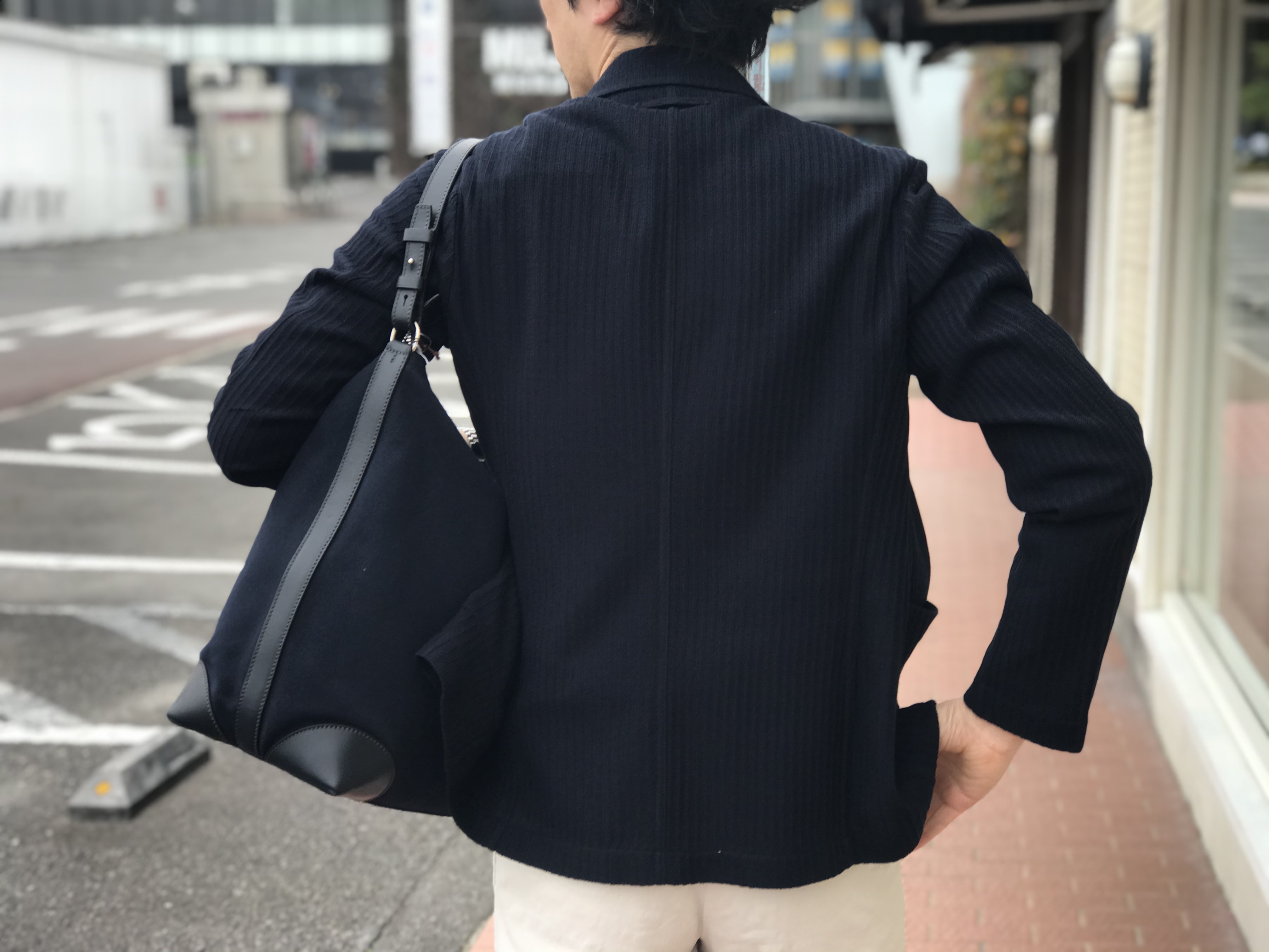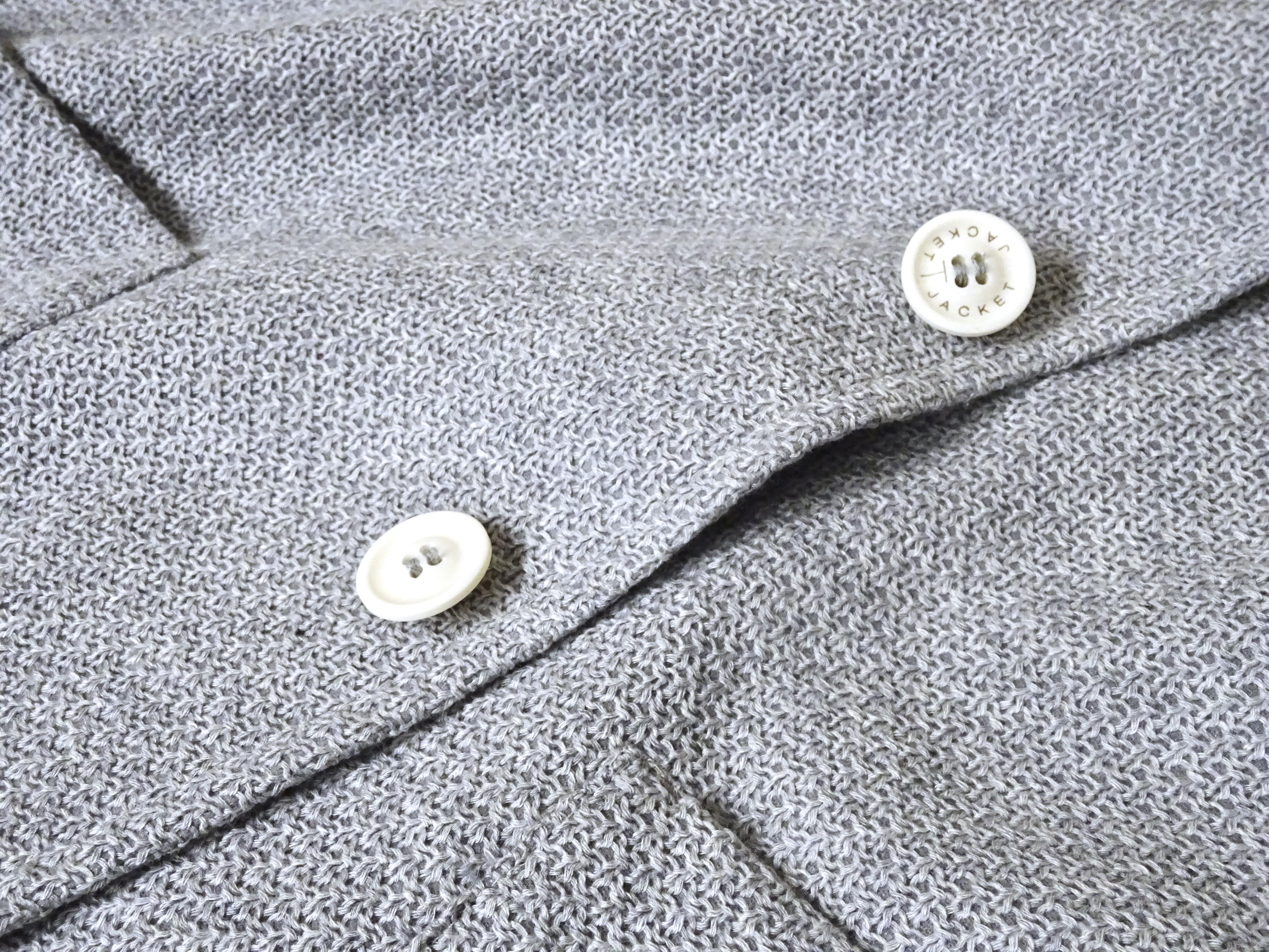 ジャケットとは言え、いわゆるニット屋が作るジャケットは、あくまでニットでありカーディガンのような着心地ですが、「TONELLO」印のテーラード技術で作られたこちらは、軽やかさの中にも、構築されたジャケット然としたシルエットを描きます。