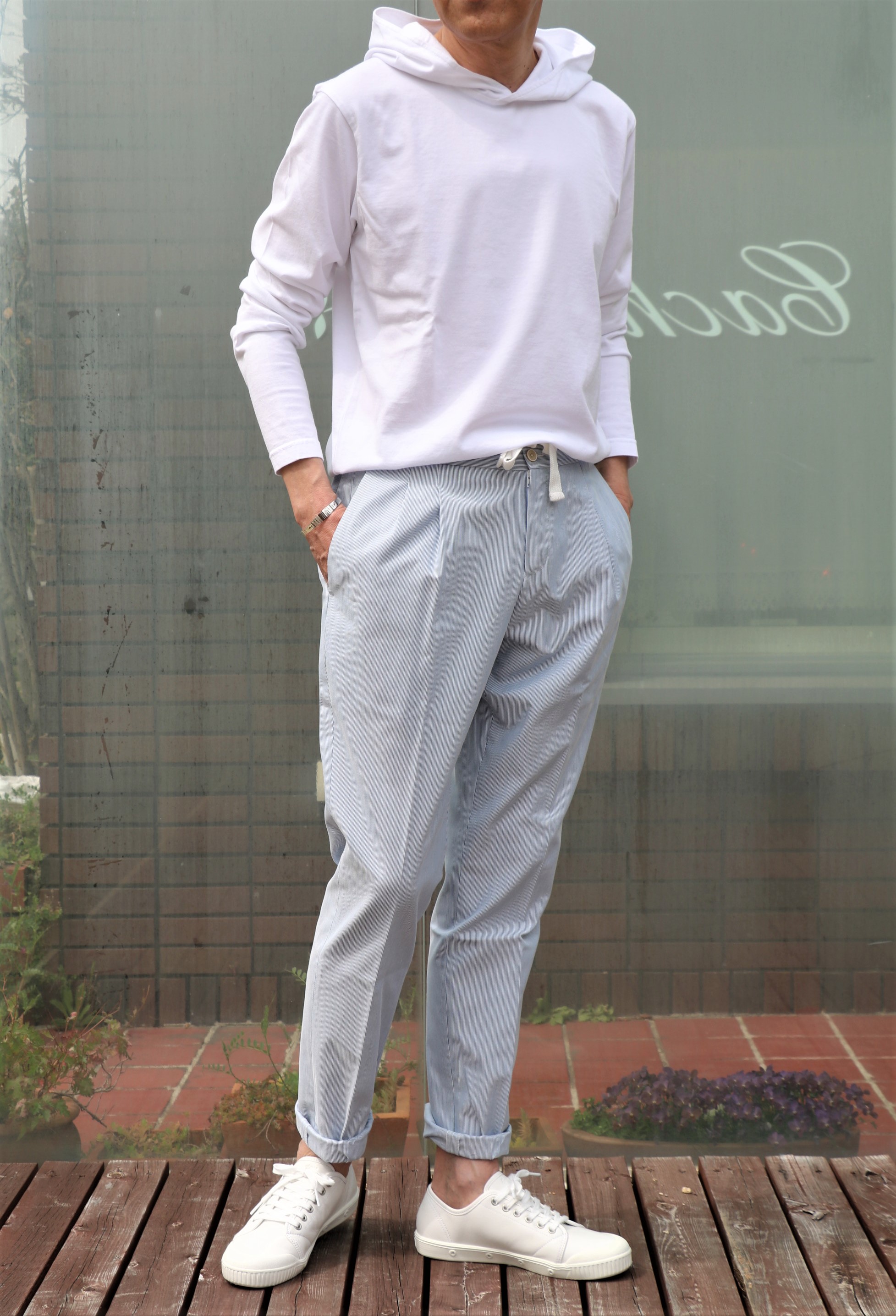 初夏の日差しの中、着たいスタイルが、FEDELI(フェデーリ)のパーカーとPT TORINO(ピーティートリノ)のパンツ。本日、時間の都合で置き撮りなしでご案内します。詳しくは、SUGURU SHOPでご確認ください。