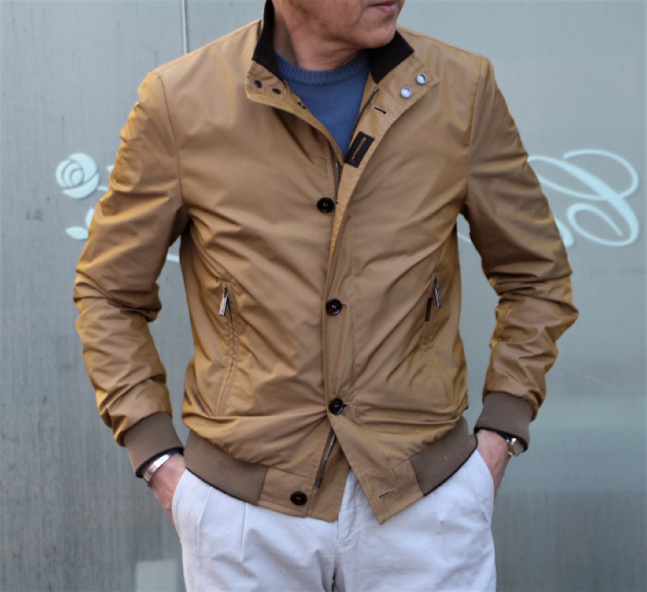 春の日差しを浴びて登場したのは、【HERNO/ヘルノ】のフーデットブルゾン。今までのヘルノとは違います。次のシーズン、2020年秋冬は全員参加のバイイングでしたが、この時はタカイ、ジュニア、そして私の3人。真っ先に飛びついたのが、ジュニア。いつのまにか個人オーダーをしておりました。