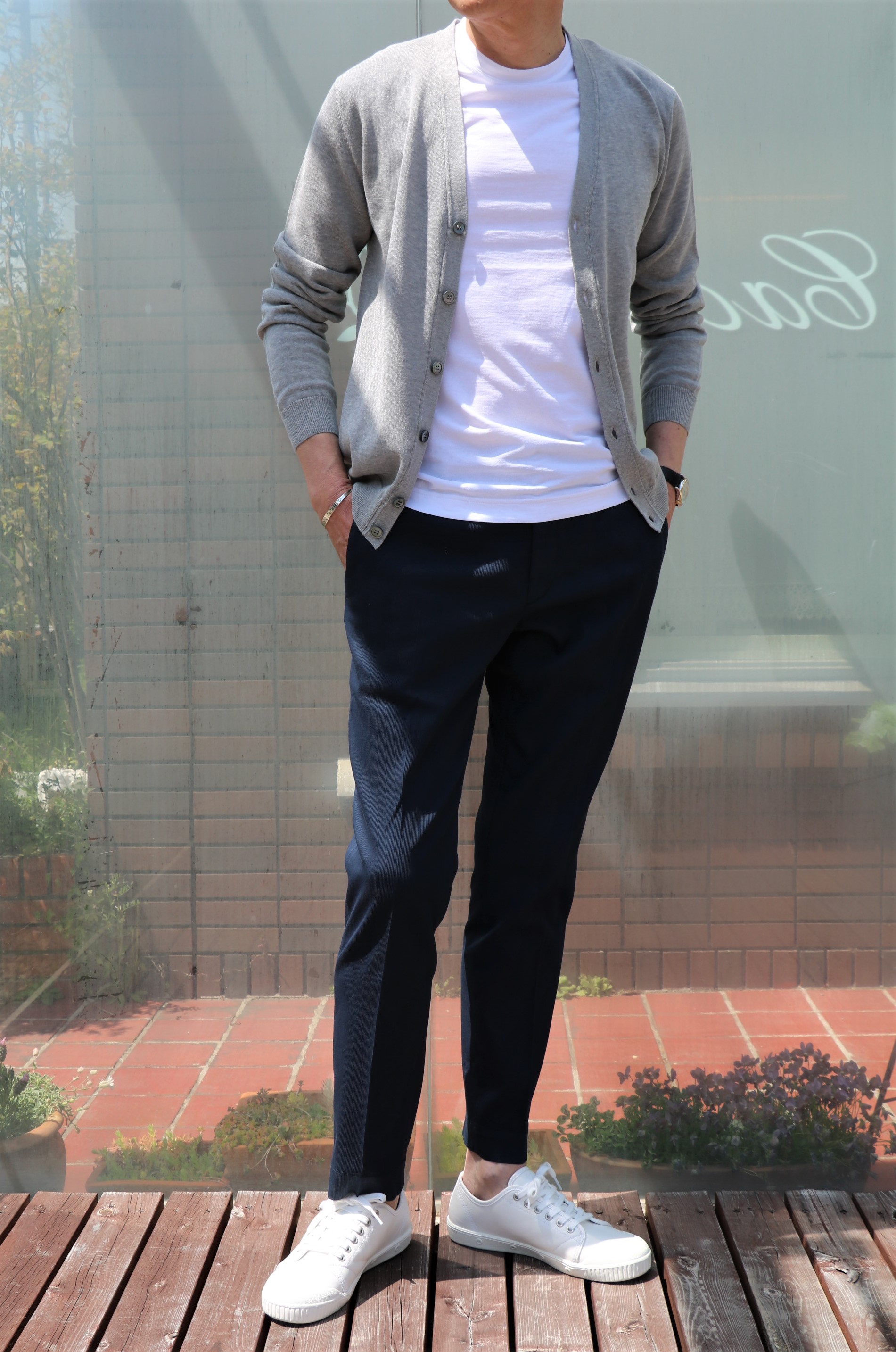 Tシャツ一枚で心もとない...お腹周りのことではありません。着用シーズンの話です。重ね着もしやすい嵩張らないカーディガンはいかがでしょう。もちろん、フロント釦を閉じれば、ごまかしもききます。