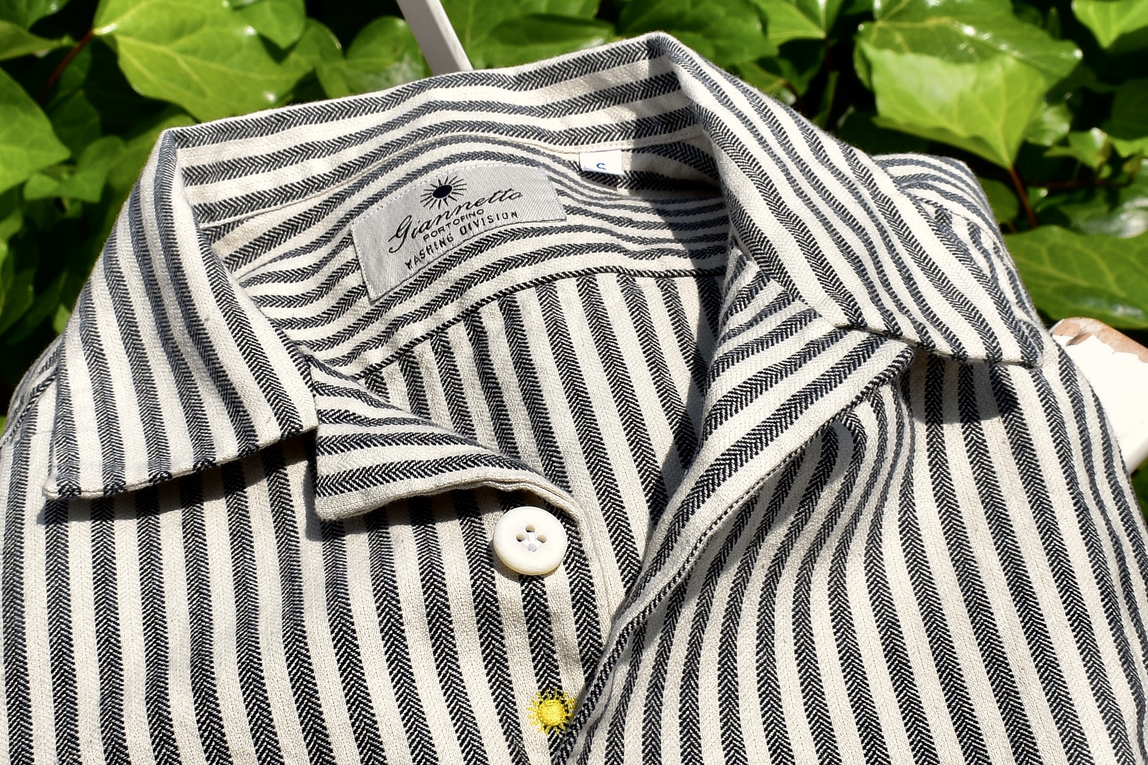 今季のジャンネットの羽織れるシャツは、「NEW CARAIBI」というモデルです。CARAIBIとは、イタリア語で"カリブ地域"を指す言葉で、元々南イタリアの開放的な雰囲気を得意とするジャンネットらしい、軽やかな羽織りのシャツシリーズです。オープンカラーの襟に、両胸のポケット、やや大きめのボタン。さり気なく夏らしさ、アウターらしさをアピールするでしょう。