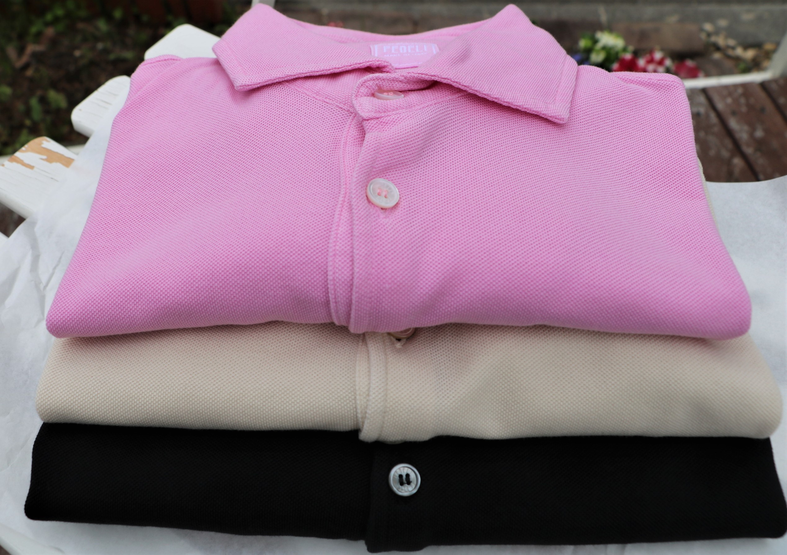 コーディネートで並べてみました。セレクト最後のご案内は、ショートスリーブの鹿の子ポロシャツ「TOMMY」です。