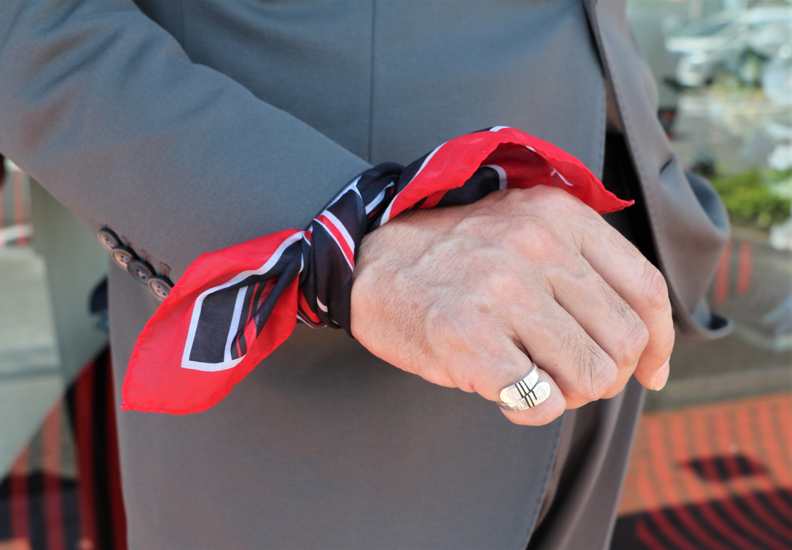 お買い上げの方へのノベルティーは、オリジナルポケットチーフ。多くの方の手に結ぶことができますように...