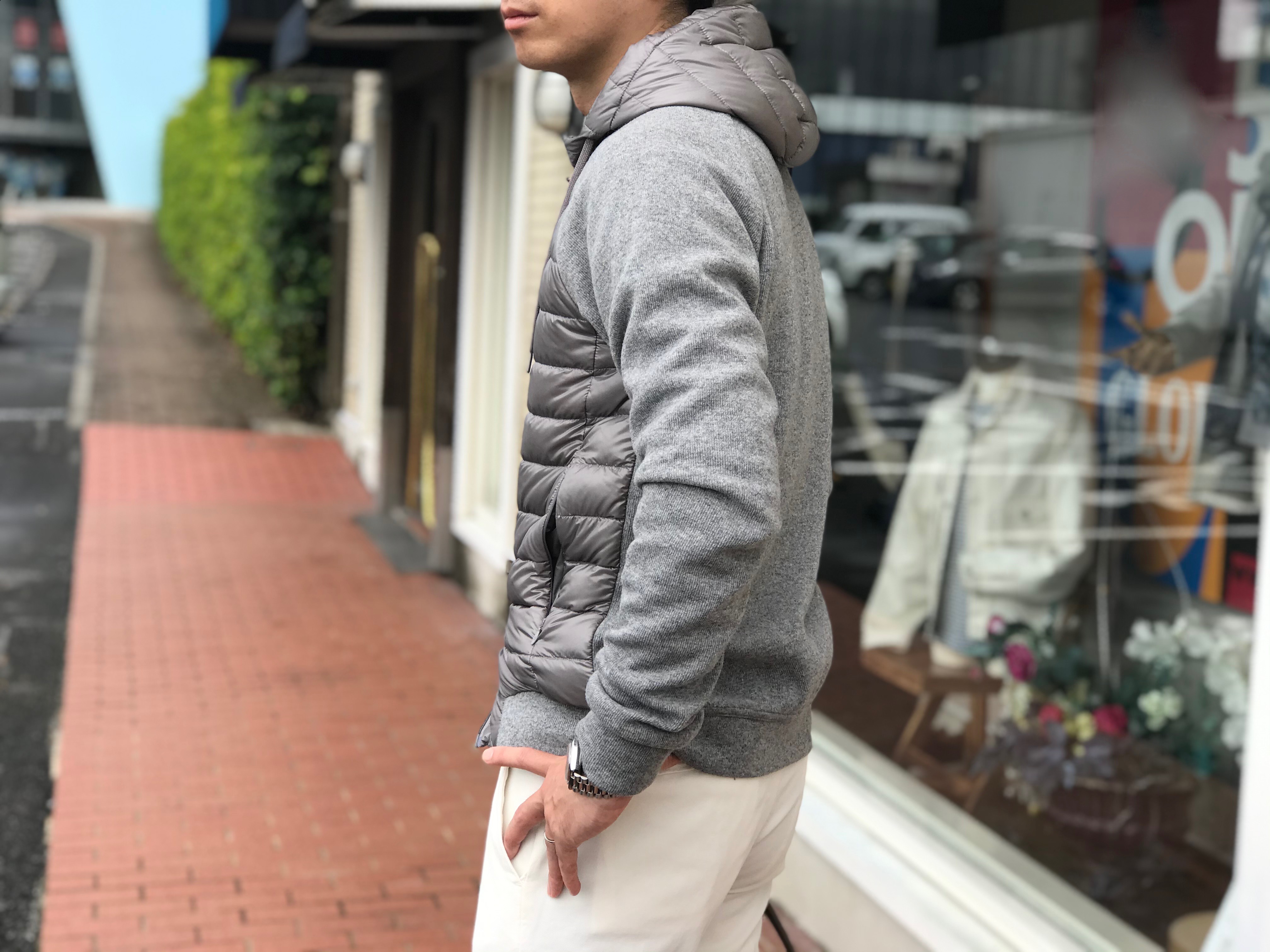 まずご紹介するのは、ダウンとニットのハイブリットモデル。軽やかな見た目と、切り替えのデザインが目を見張る人気のシリーズです。