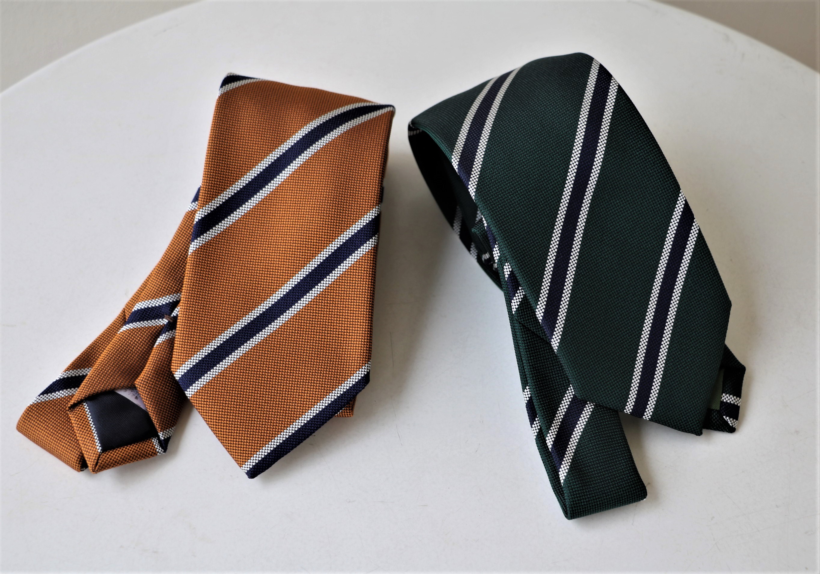 8月22日のブログでTAGLIATORE(タリアトーレ)のダカールスーツに締めていたのが、こちらのオレンジのストライプ柄タイ。元気の出るビタミンカラーのネクタイです。