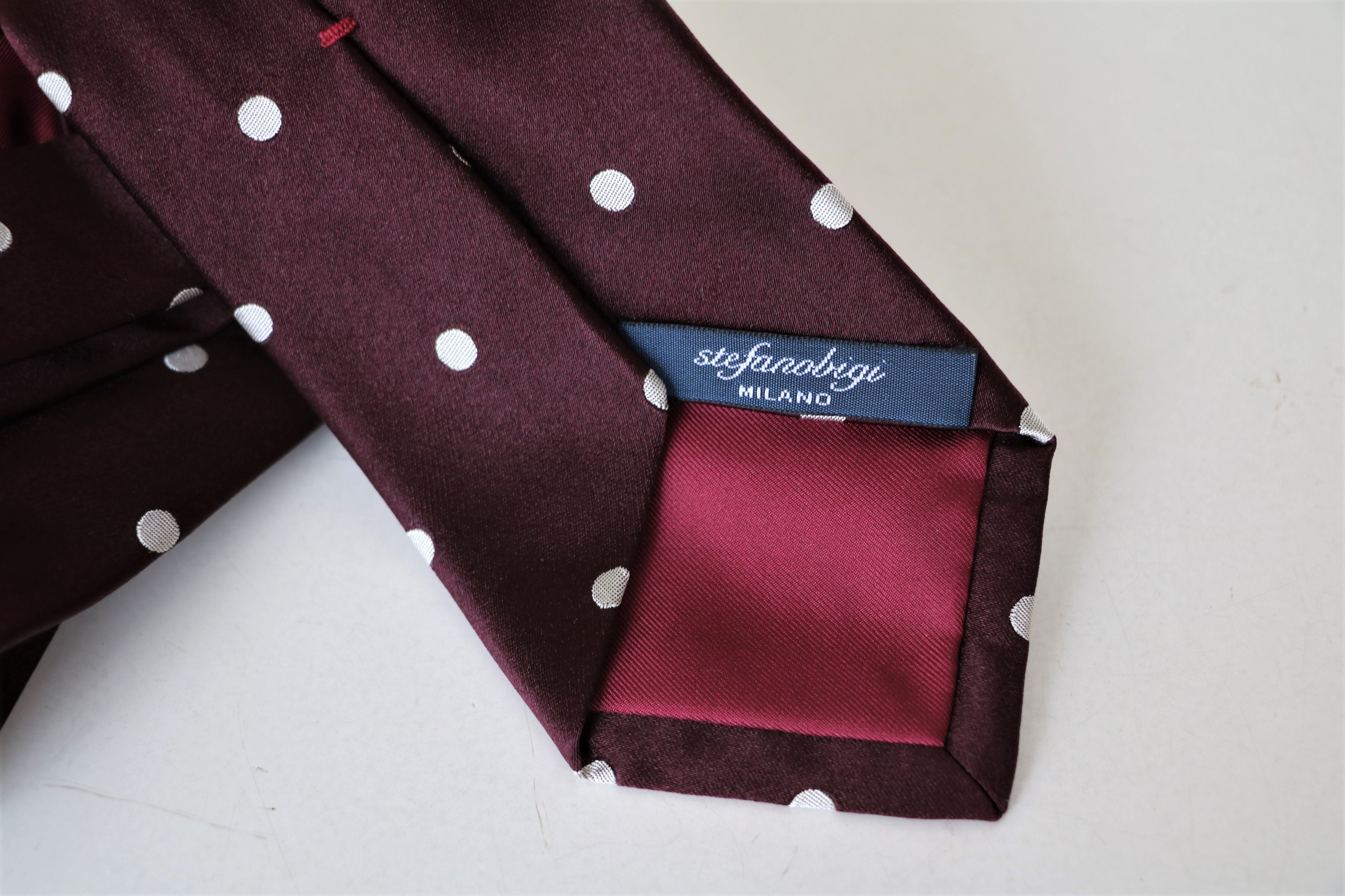 セレクトカラーはボルドーとネイビー。光沢のあるシルクサテンなら、さらにオケージョン用として使える華やさがあります。緩めに結んでも緩まない...打ち込みのしっかりした生地は、締め心地がいいのです。