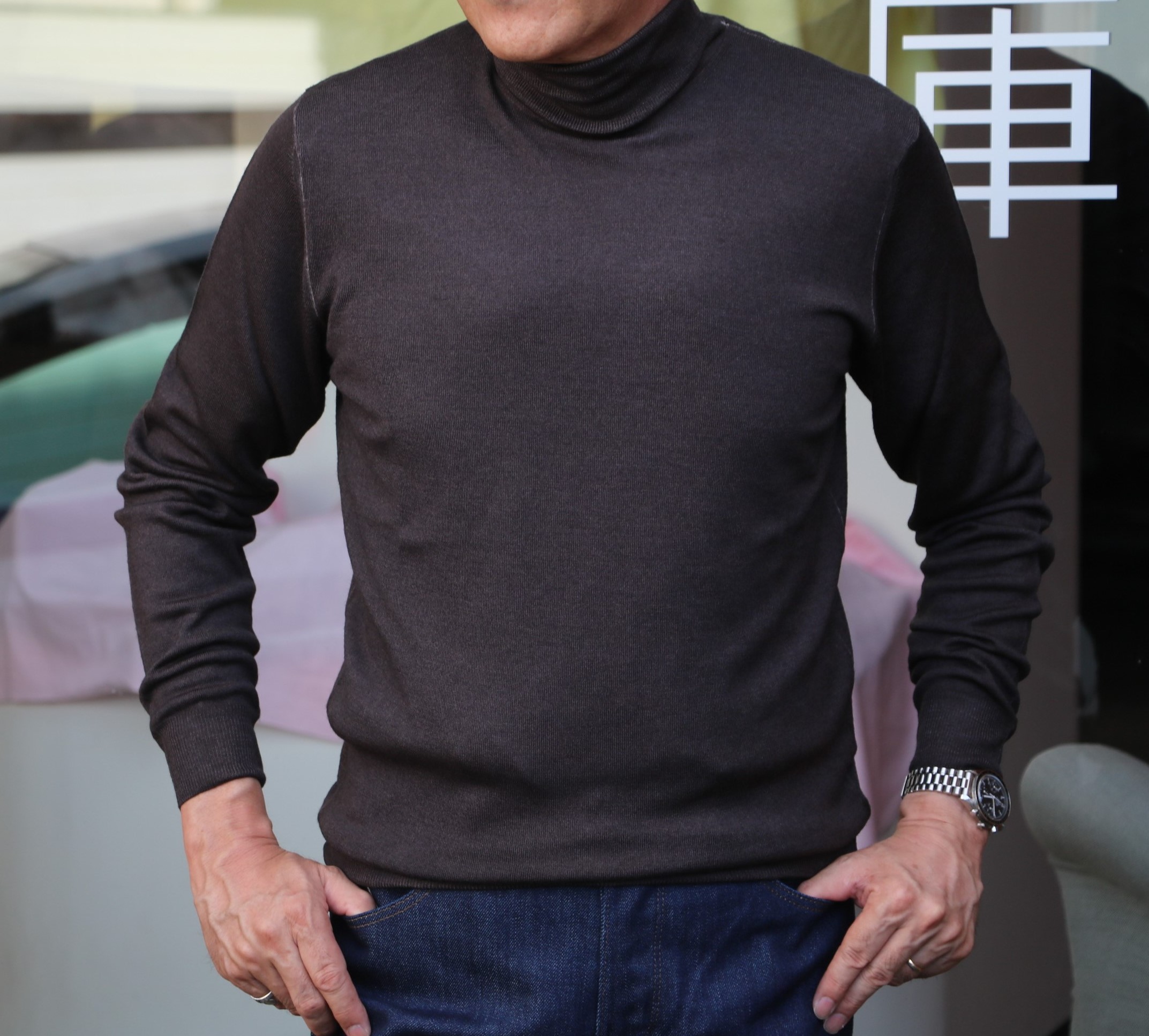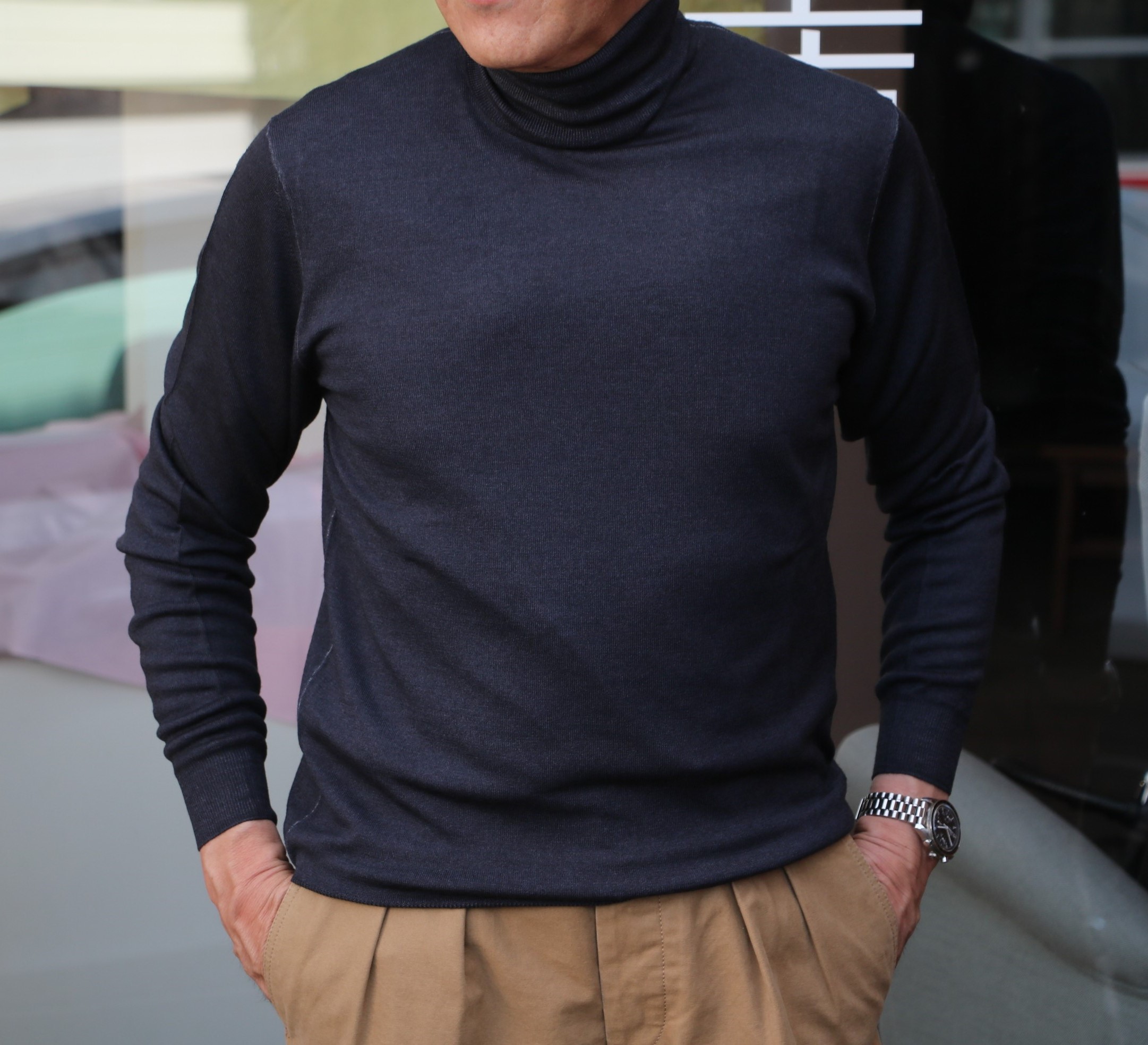 新たに入荷したTAGLIATORE(タリアトーレ)のスーツ。ご案内は後日とさせていただき、本日は【FEDELI/フェデーリ】のタートルネック「DWERBY」メリノライトのタートルネックをご紹介します。