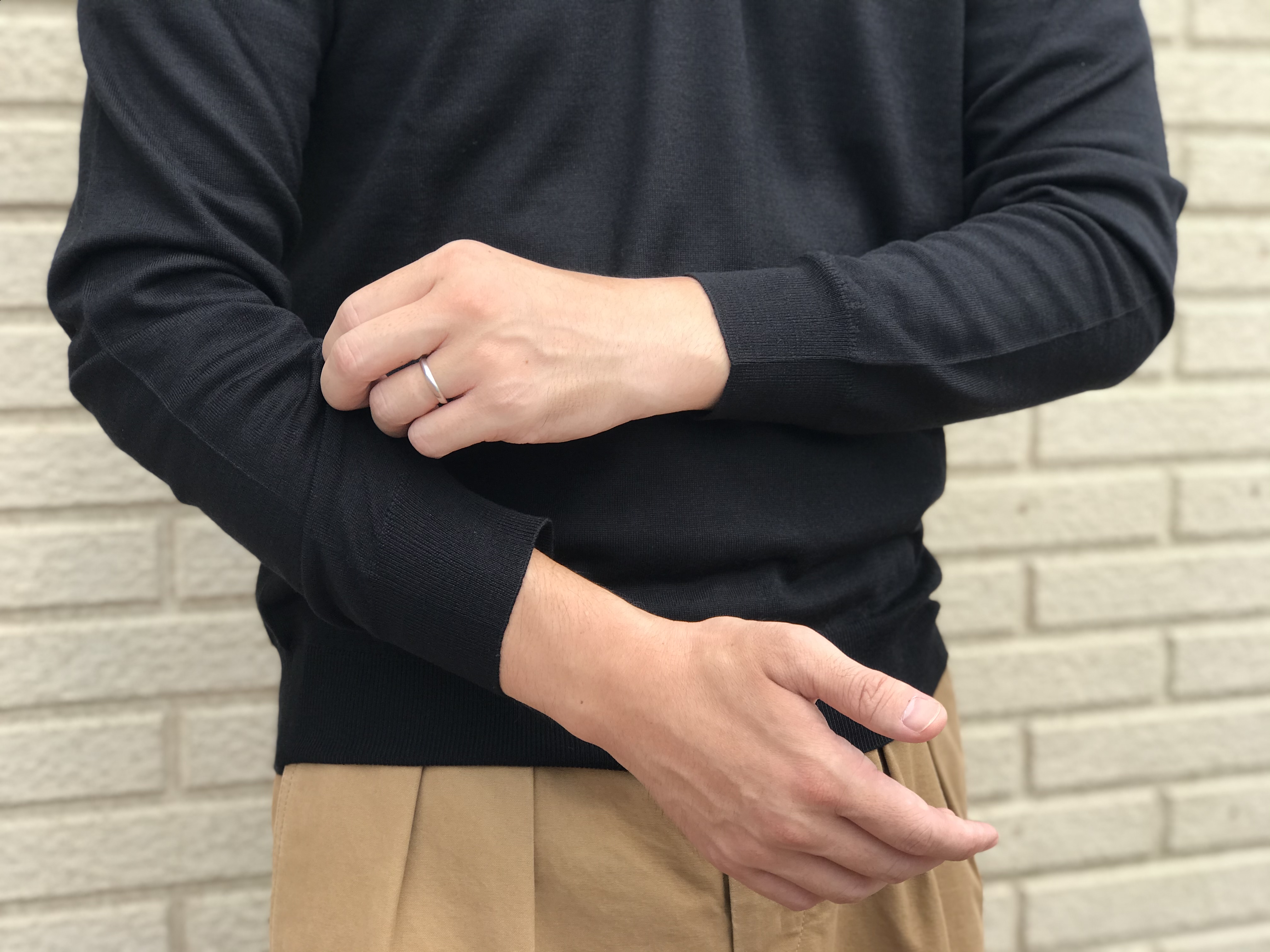 今のスーツは、タイドアップとポロセーターで作る、スタイルの振り幅で楽しみたいですね。