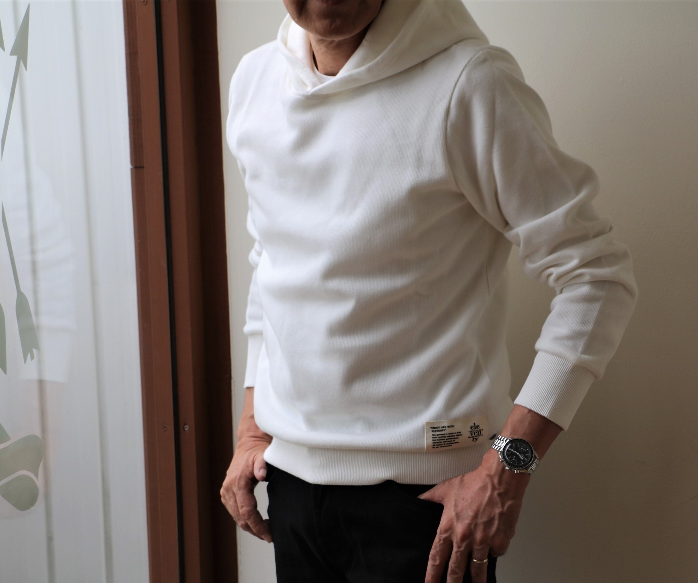 昨日の写真です。ご案内は、【eleventy/イレブンティ】のパーカーです。かつては蔵庫/マガジーノで展開。バイイングはマスヤマとジュニア。今季より、ここグローリーガイで展開することになり、再び、私スグルがバイヤーに返り咲きです。