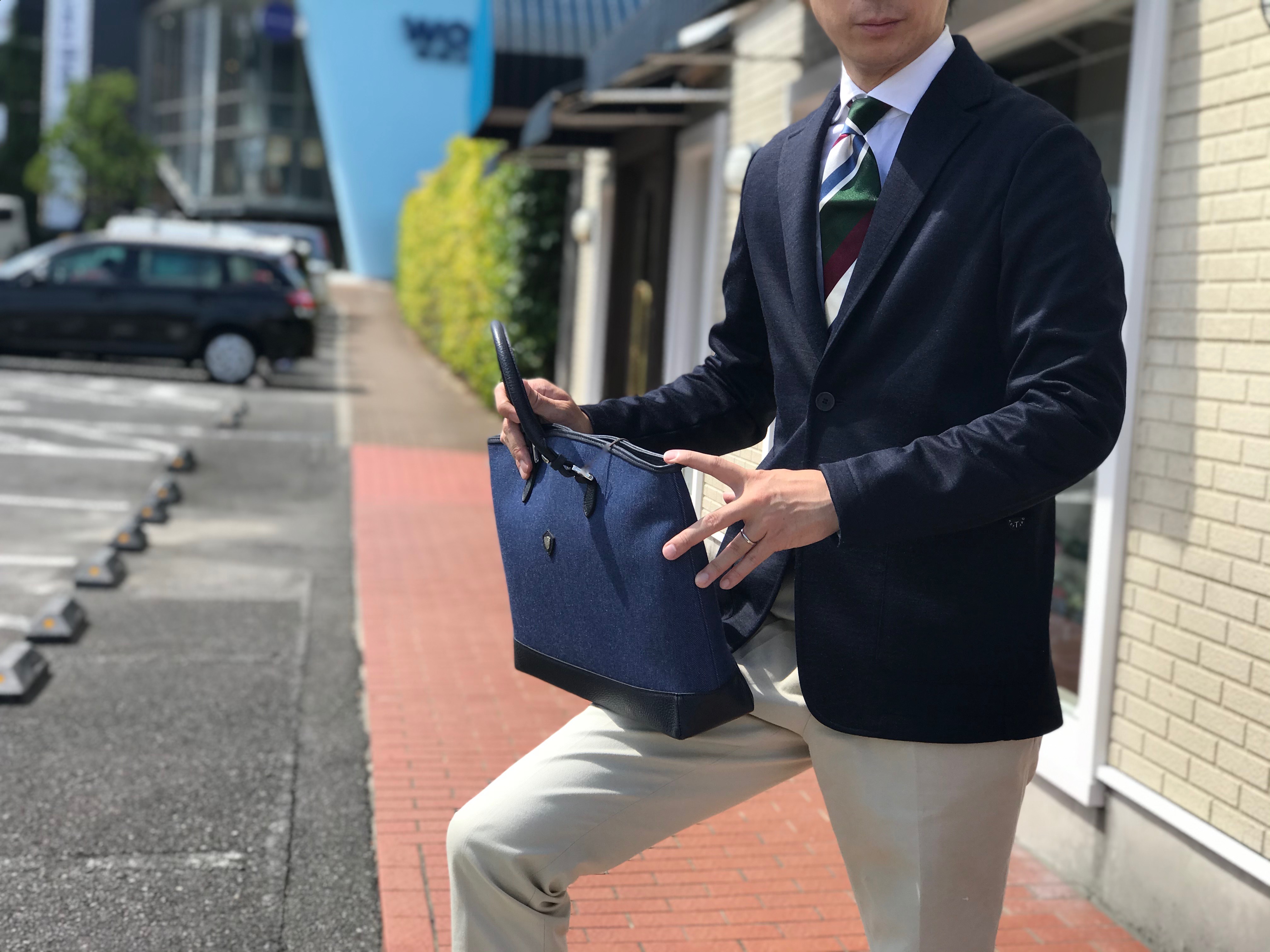 モデルは身長180㎝、体重67㎏、胸囲94㎝で、サイズMを着用しております。カジュアルでコーディネートしたニットはZANONE、シューズはPHILIPPE MODEL。オンビジネスで合わせたネクタイはstefanobigi、バッグはCHAMBORD SELLIERです。