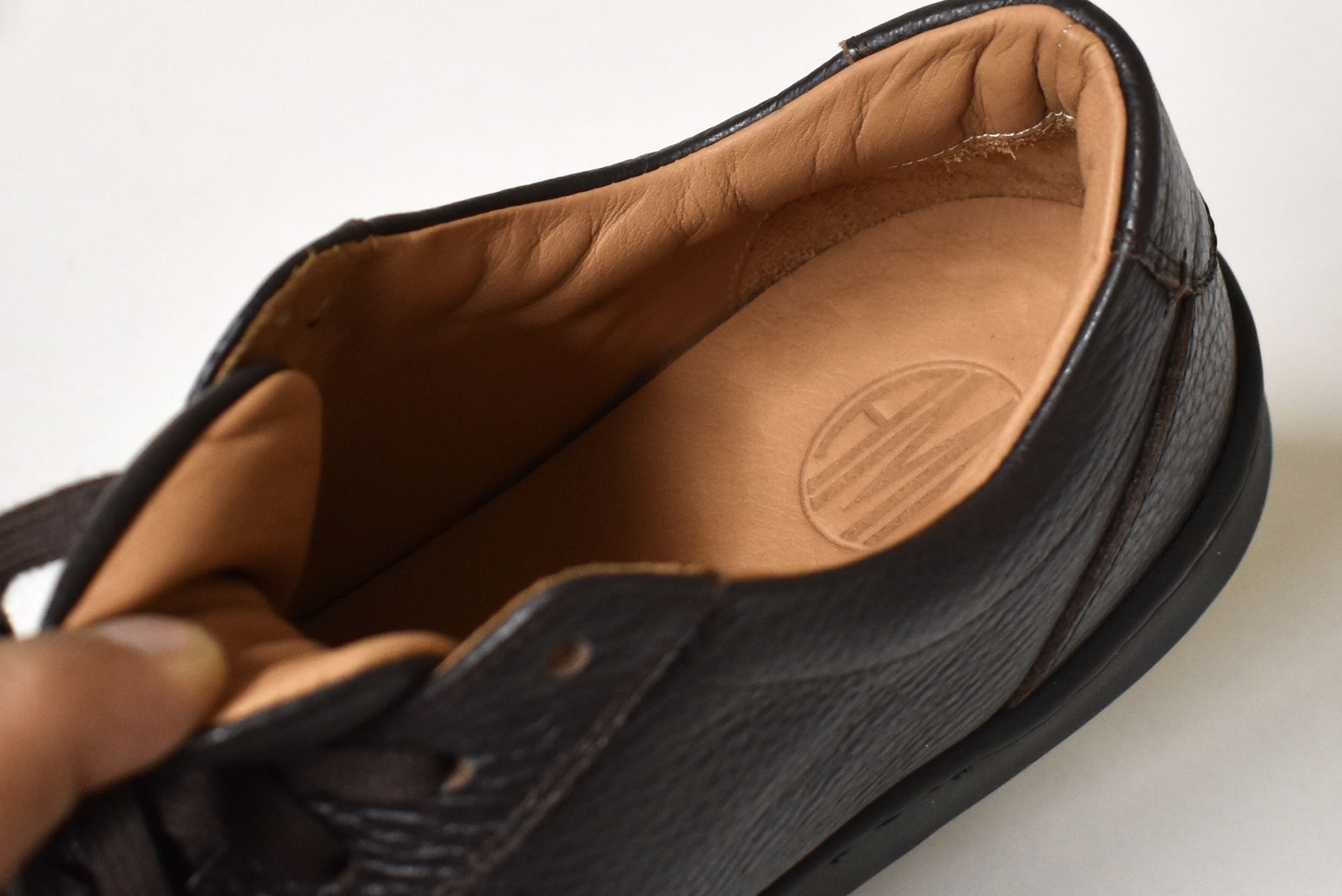 足に吸い付くような履き心地には、靴の内側の作りも大いに関係しています。フルレザーのライニング(裏地)は、場所によって膨らみが作ってあり、フィット感を高める意図を感じます。特にタンのライニングは膨らみが多めで、足の甲に優し〜くフィット。「これ履きやすい!!」と声が漏れるはずですので、是非一度、足を入れに来てください。