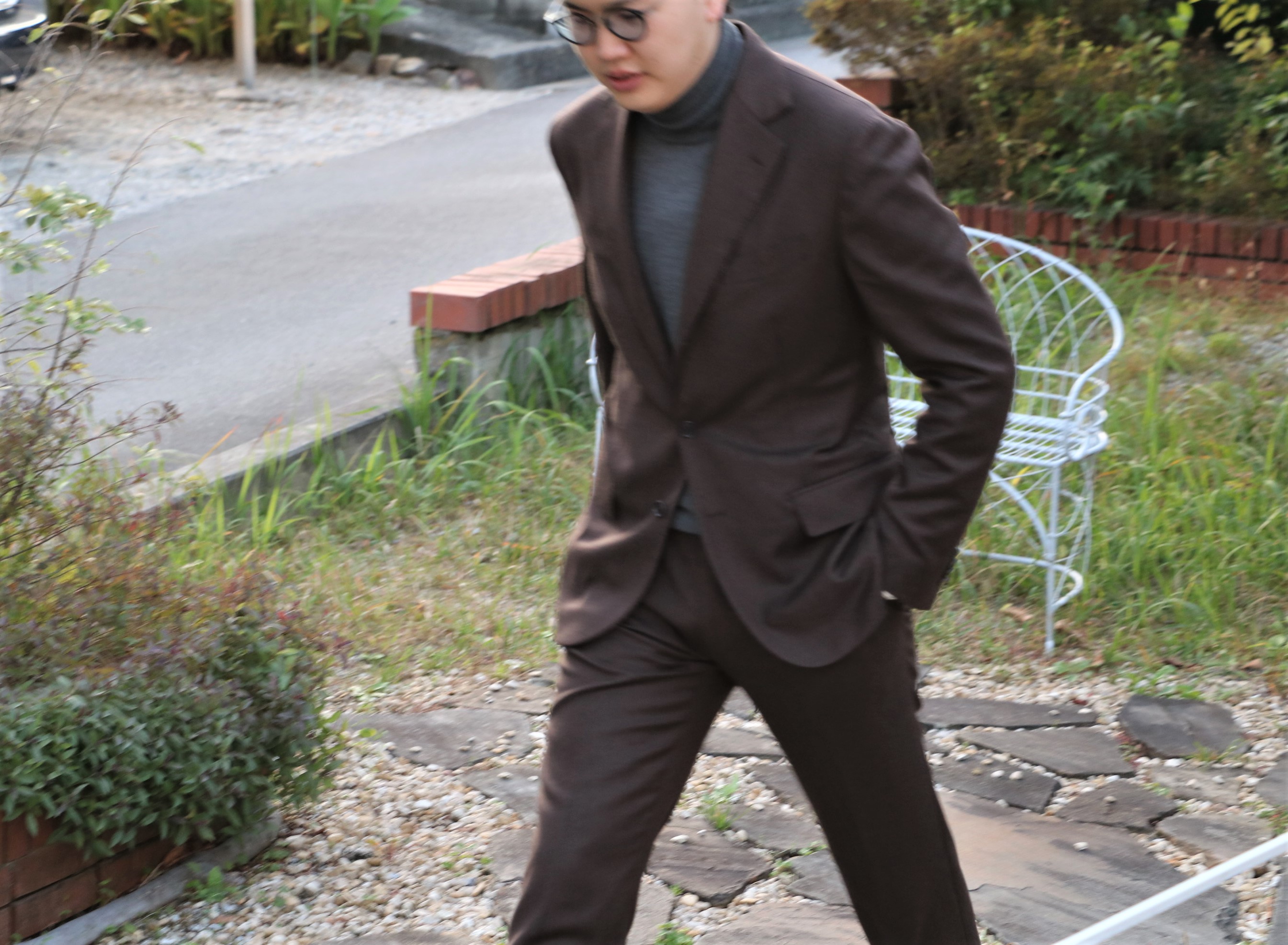 個人的なインスタ用でしょうか。De Petrillo(デ ペトリロ)のスーツに、Dorumohr(ドルモア)のタートルを合わせて、颯爽と歩いておりました。