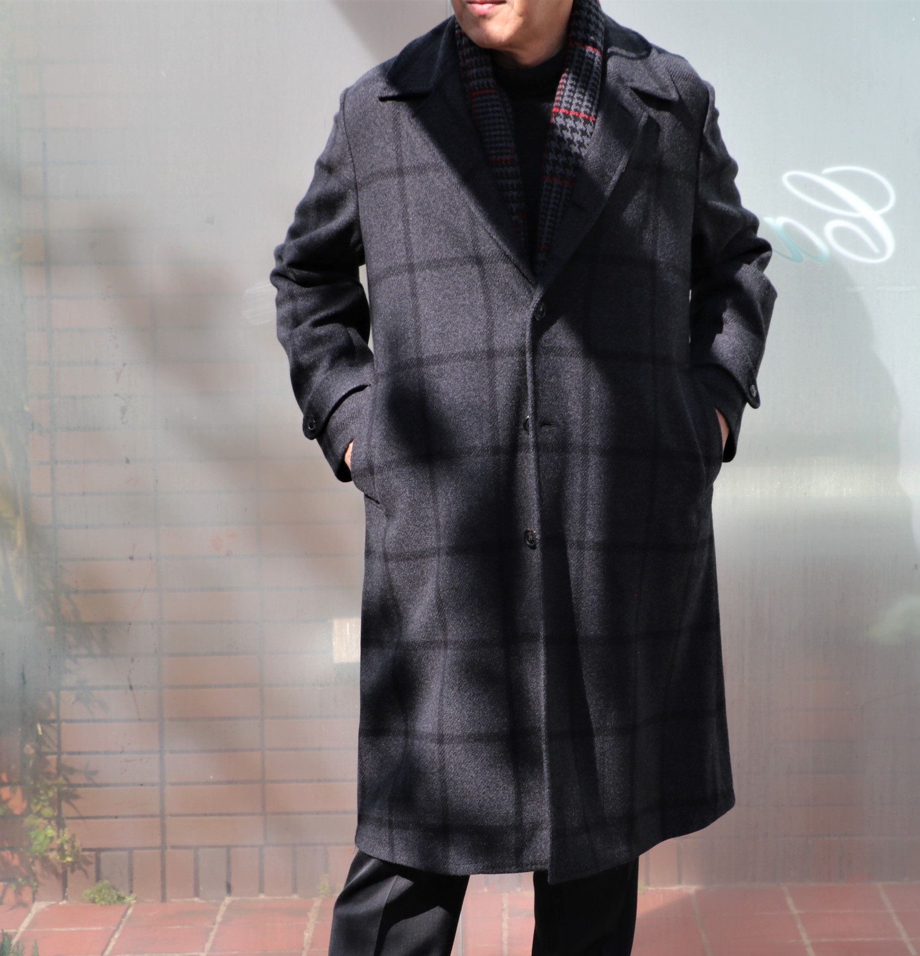 MODEL:カシミア混ウール ウィンドウペン柄オーバーコート
